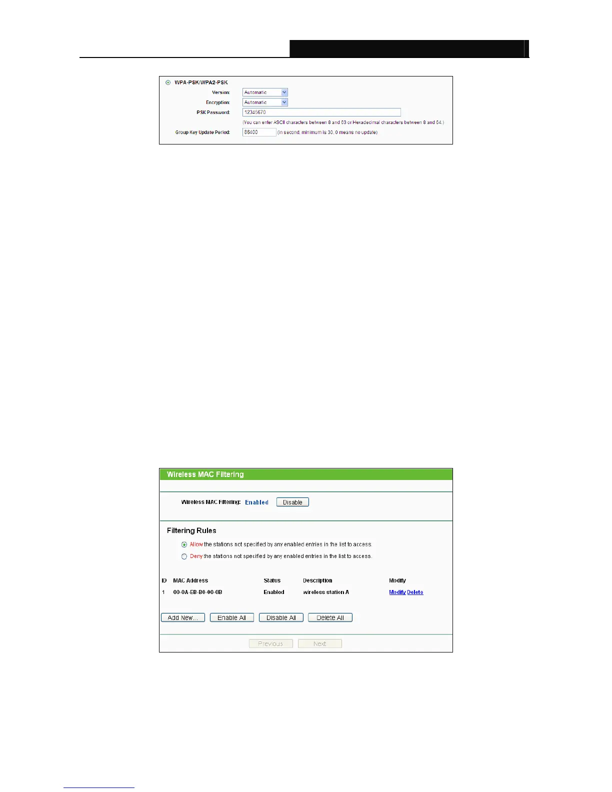 Wireless MAC Address Filtering entry" page will appear, shown in Figure 3-15.