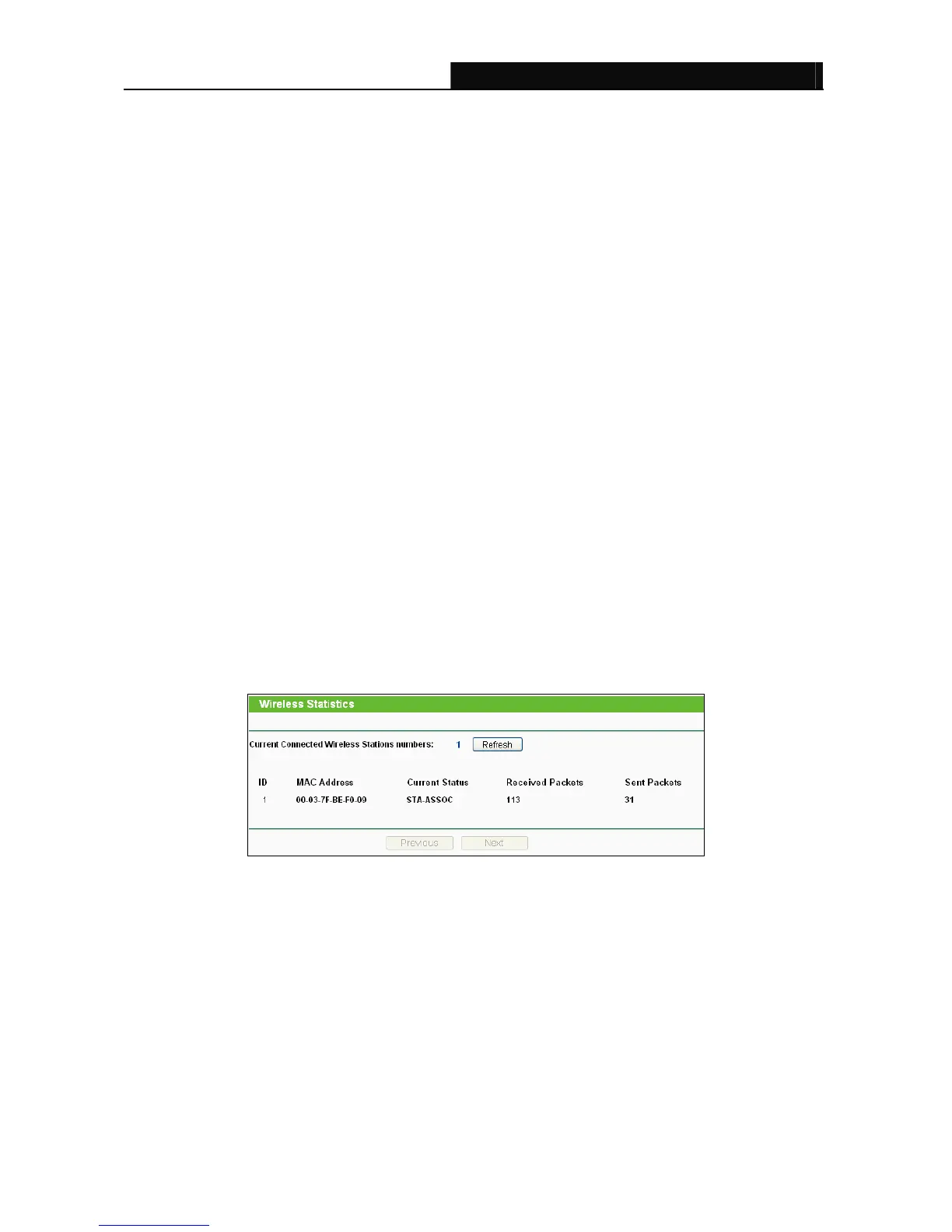 connected wireless stations, click the Refresh button.