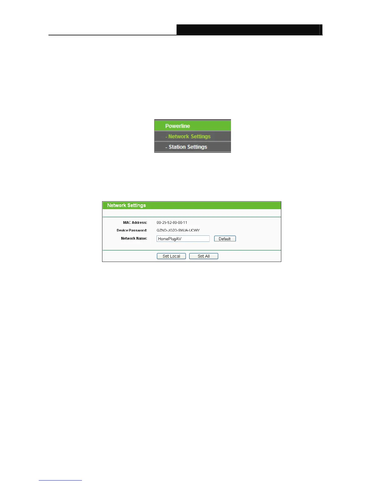 There are two submenus under the Powerline menu (shown in Figure 3-8): Network Settings and