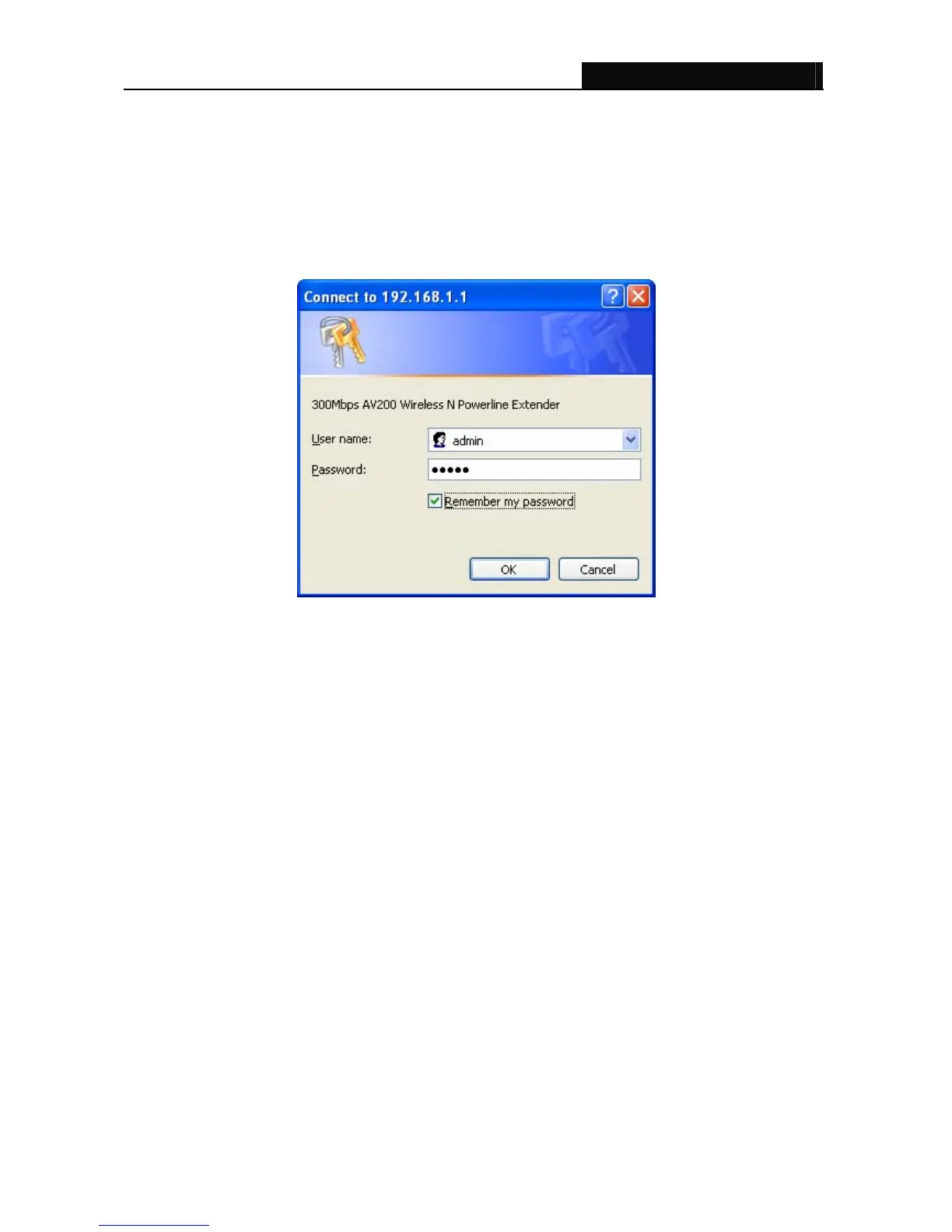 3. Enter admin for the User name and Password (both in lower case letters) in the screen below. Then
