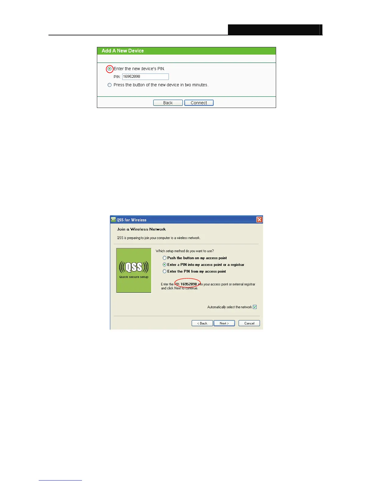 into the field after Access Point PIN. Then click Next. (QSS, also called WPS, is used by our