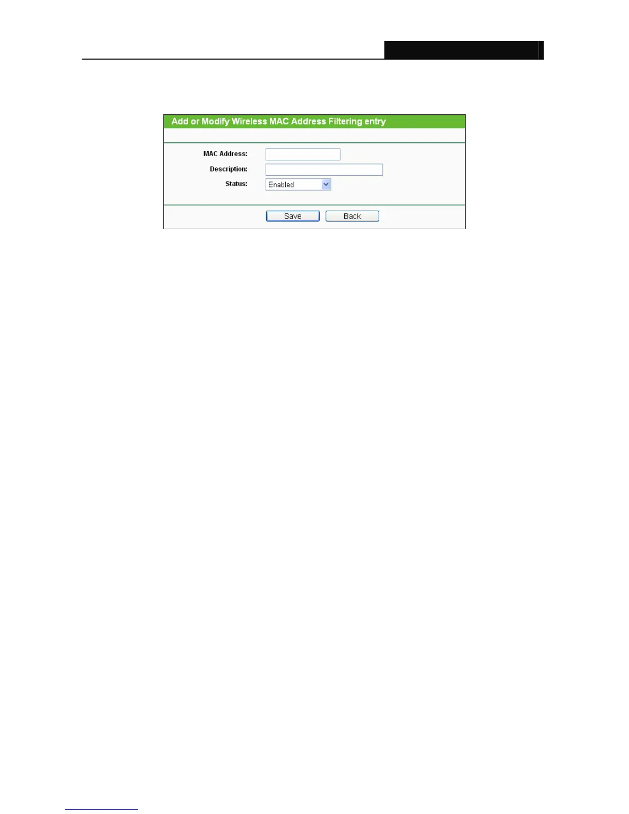 Wireless MAC Address Filtering entry" page will appear, shown in Figure 3-17.