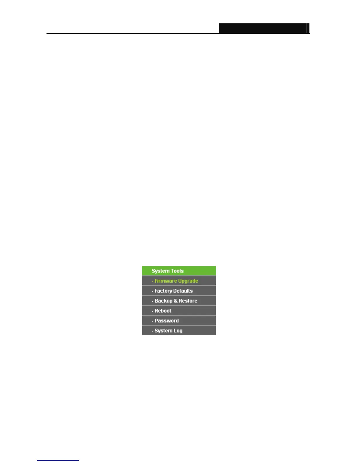 There are six submenus under the System Tools menu (shown as Figure 3-26): Firmware Upgrade,