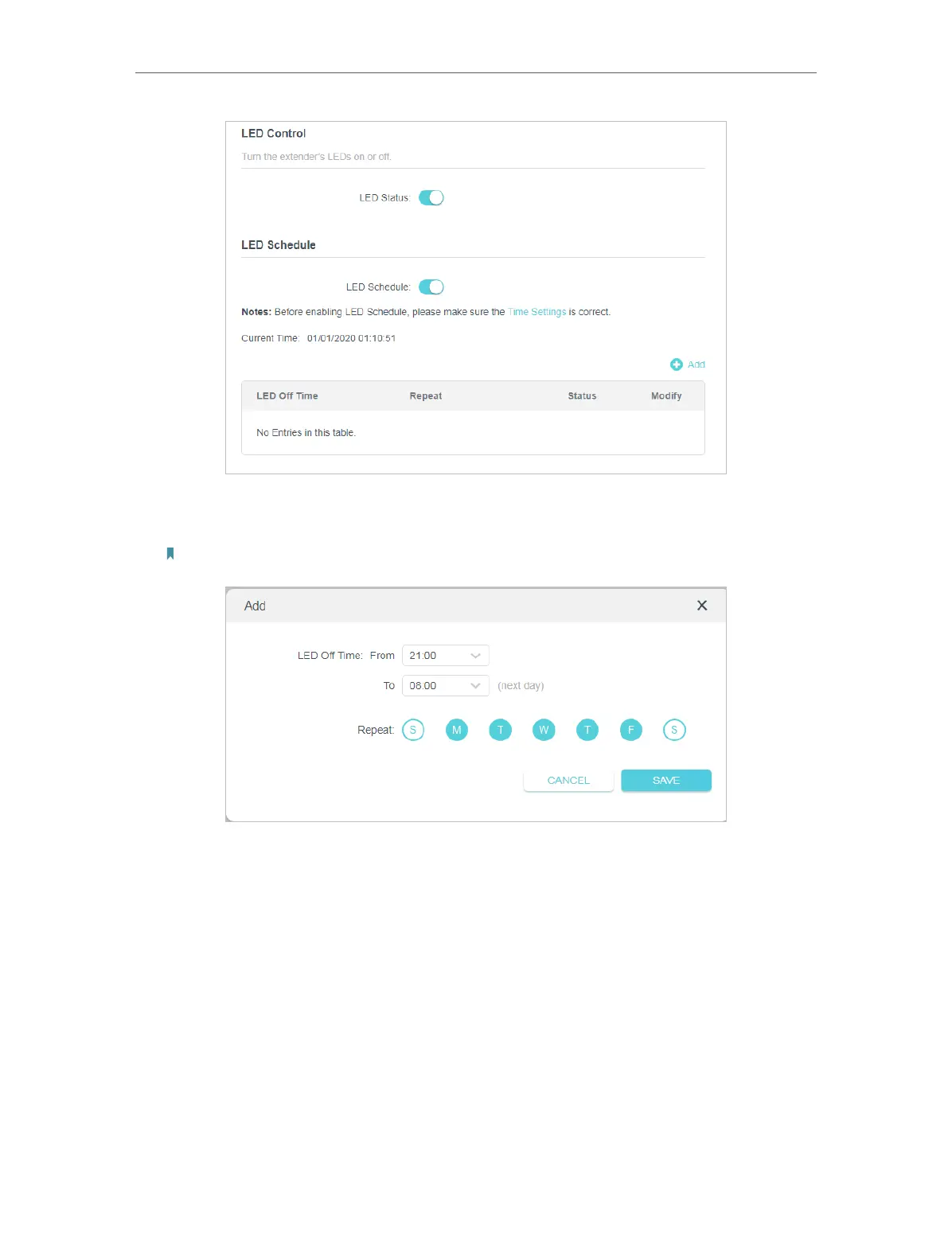 5. Click Add and choose LED Off Time from 21:00 to 08:00 (next day).