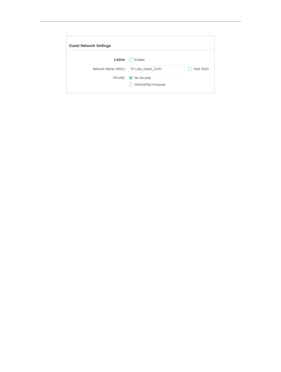 box to disable guest network function. If disabled, all guest network settings of the