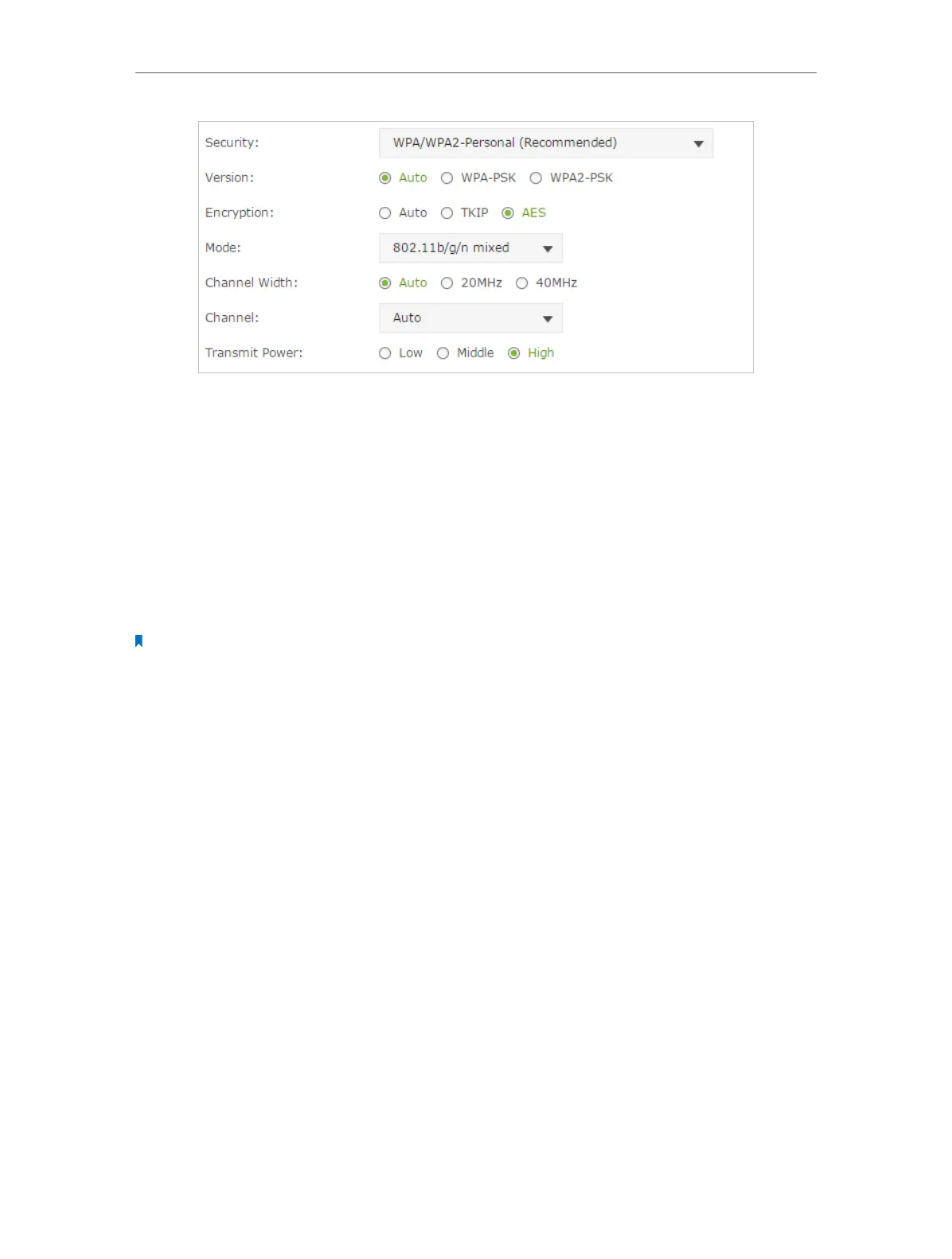 Note: When 802.11n only mode is selected, only 802.11n wireless clients can connect to the extender. It is strongly