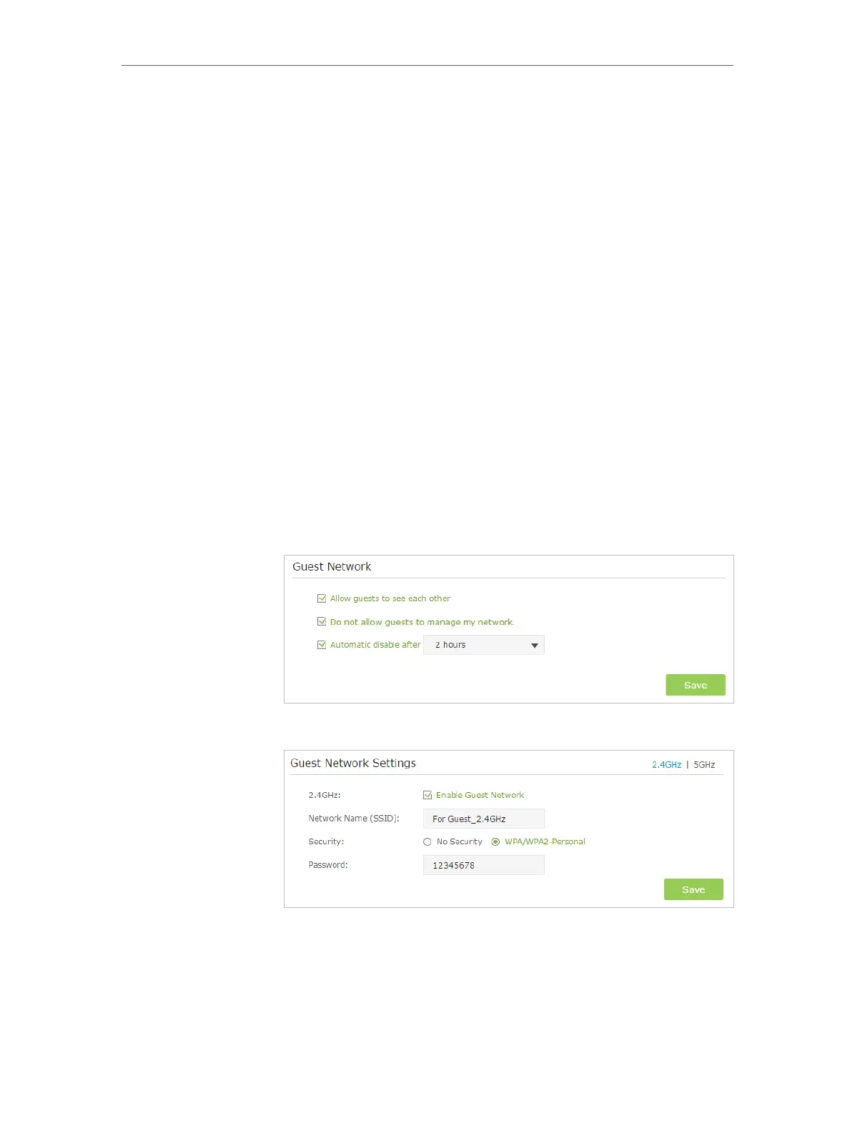 Click 2.4GHz or 5GHz, then enable the guest network of this