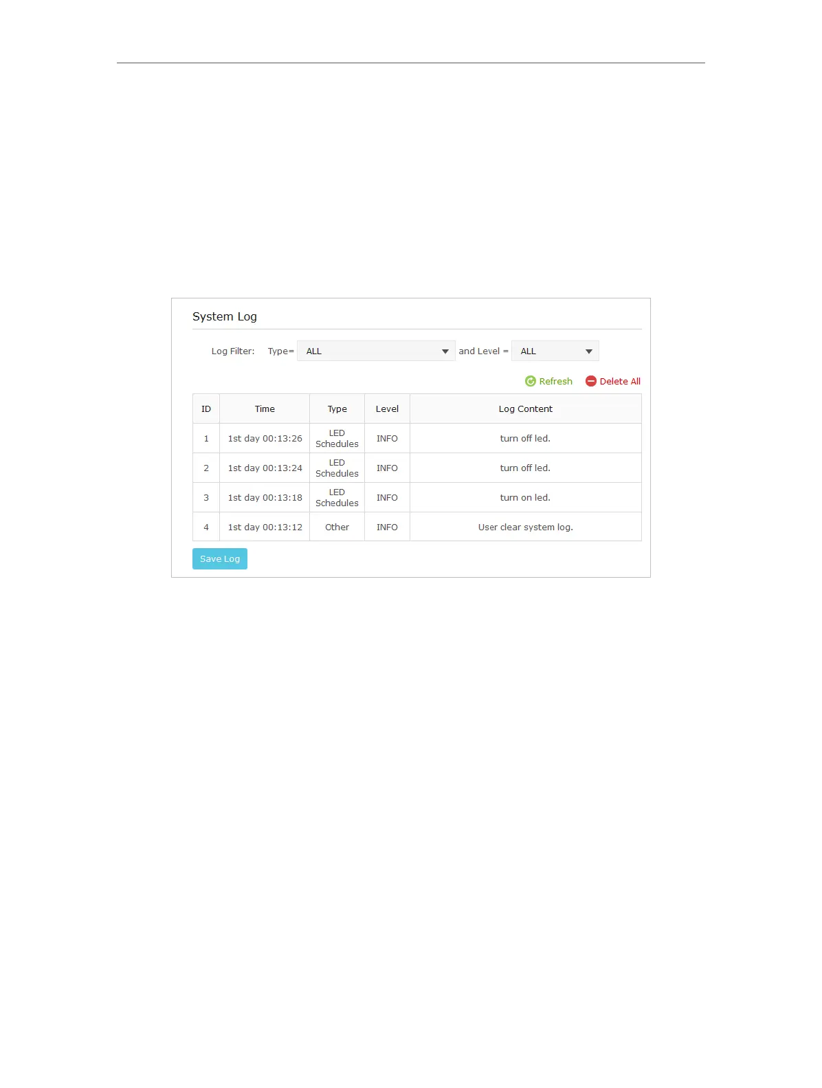 4. Click Save Log to save the system log to local.