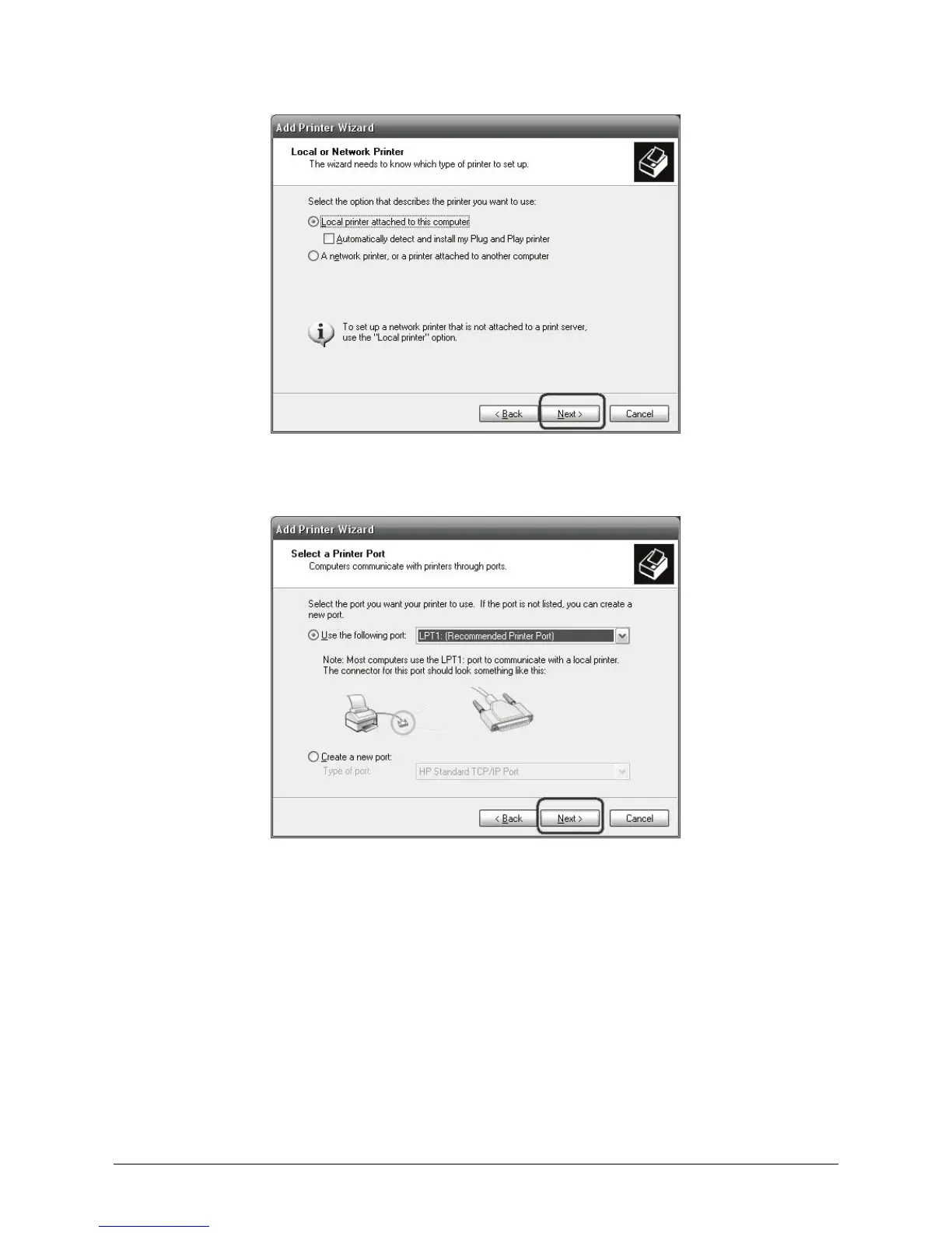 (Recommended Printer Port) from the pull-down list. Then click Next.