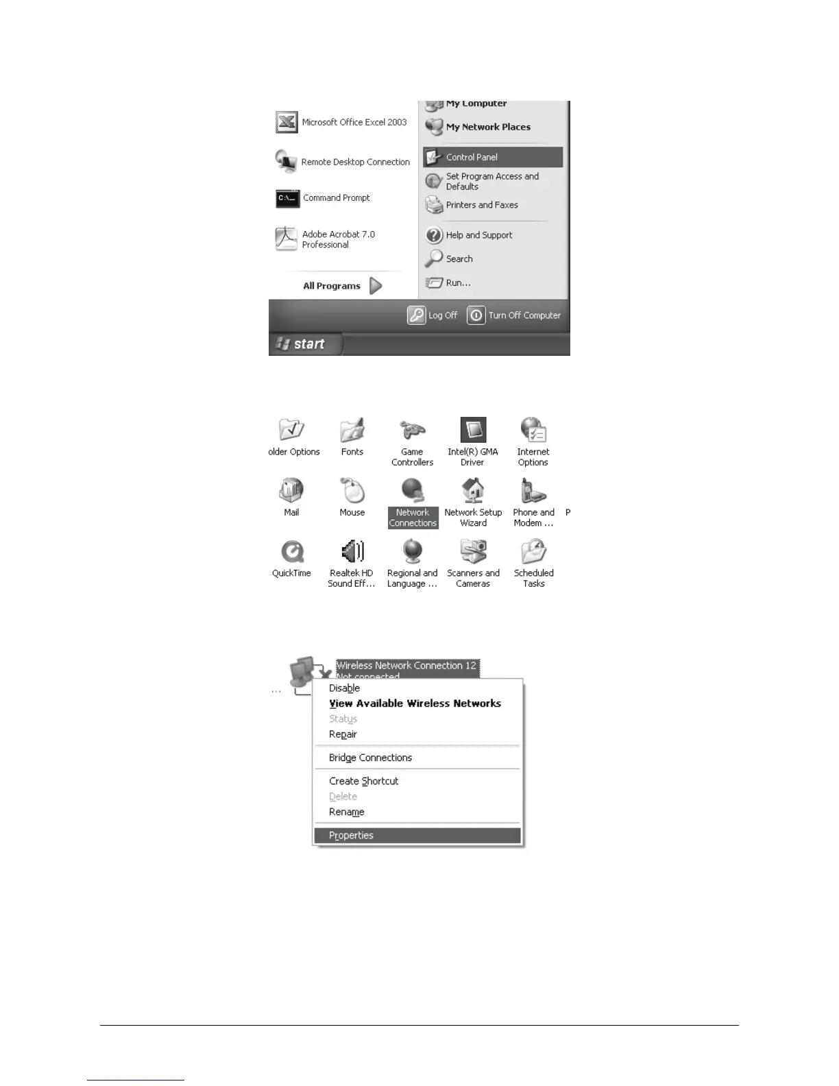 Step 3 Right Click Wireless Connection, select and click Properties.