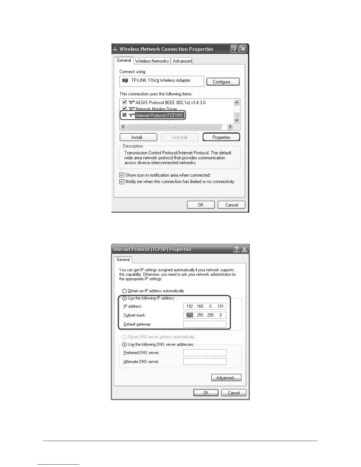 e.g.192.168.0.101Subnet mask: 255.255.255.0;