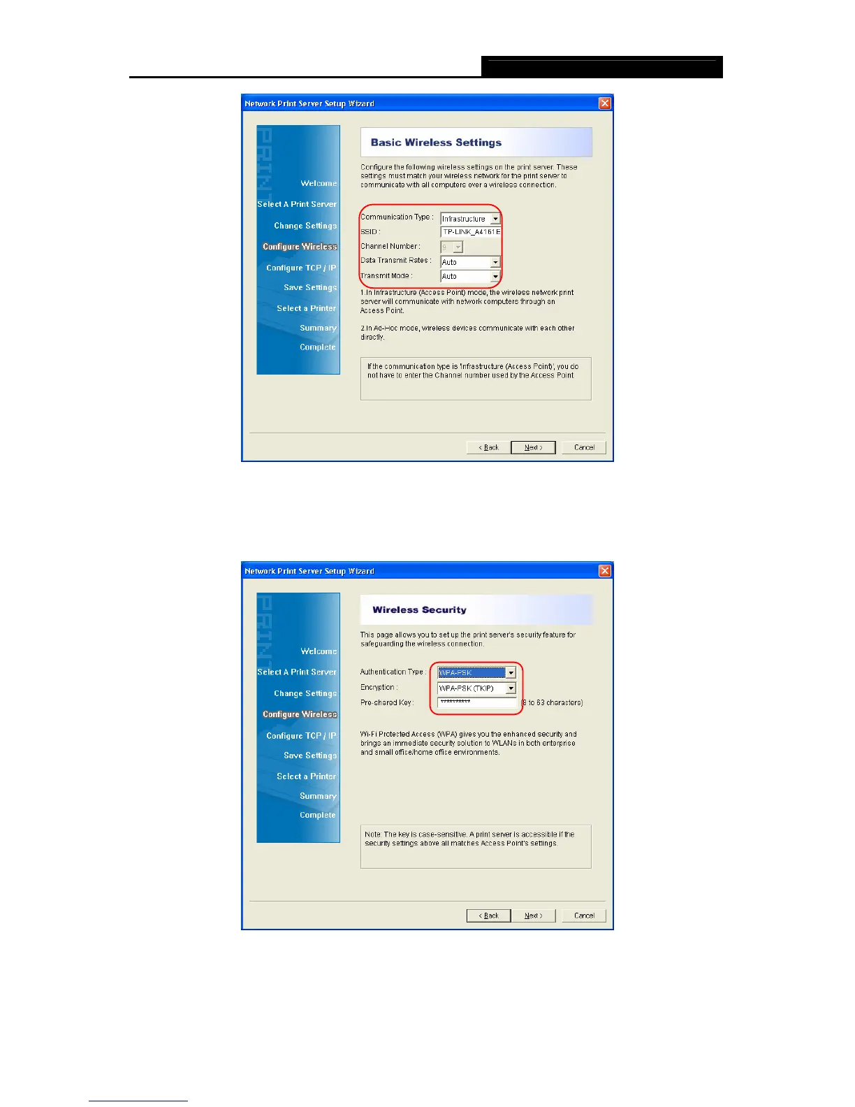 15. “Wireless Security” screen will appear as shown in Figure 3-34. Enter the Security