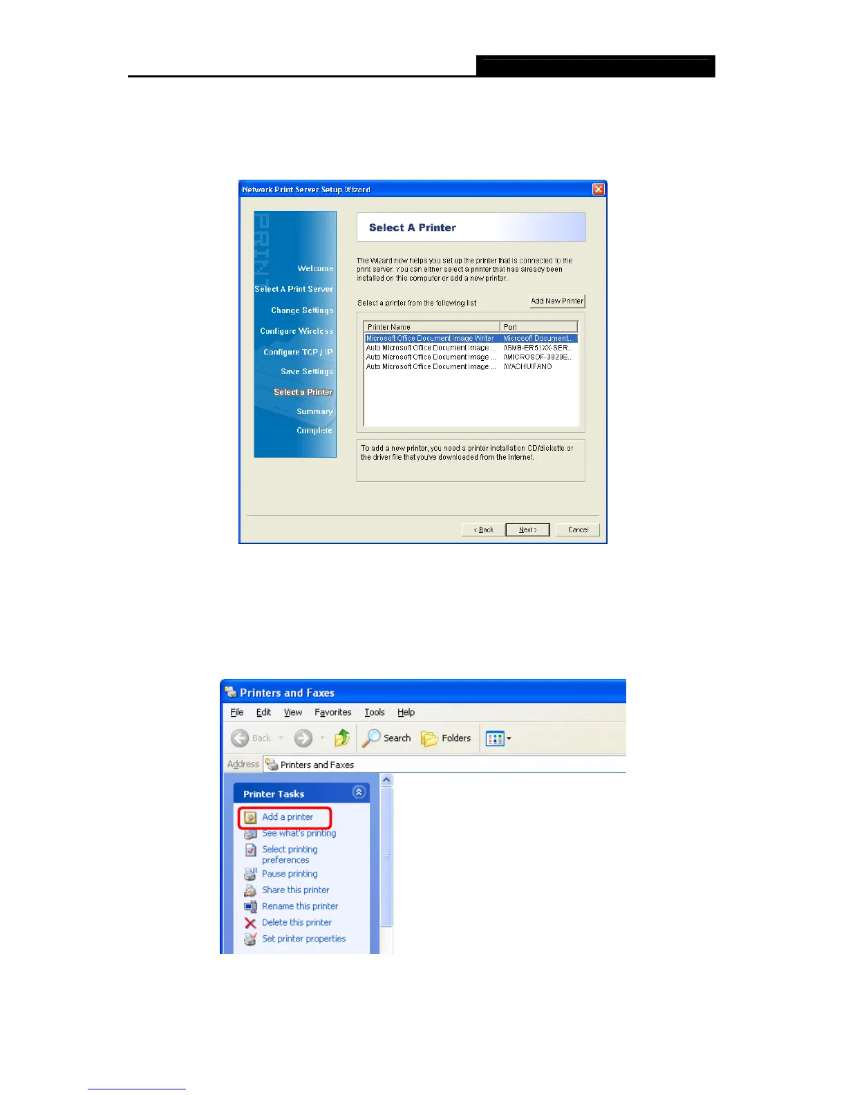 24. Click the Add New Printer button in Figure 3-44, and then Figure 3-46 appears.