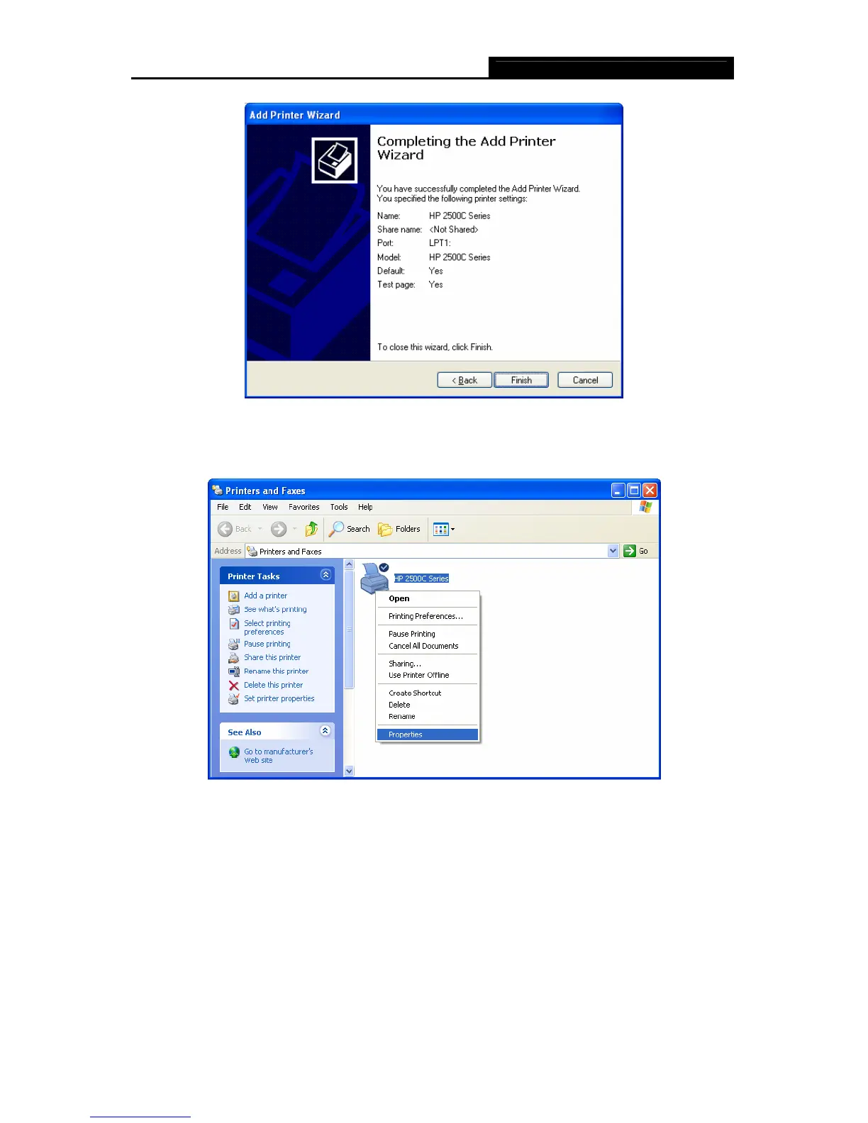 32. From Windows system, go to Start > Printers and Faxes and highlight your newly installed