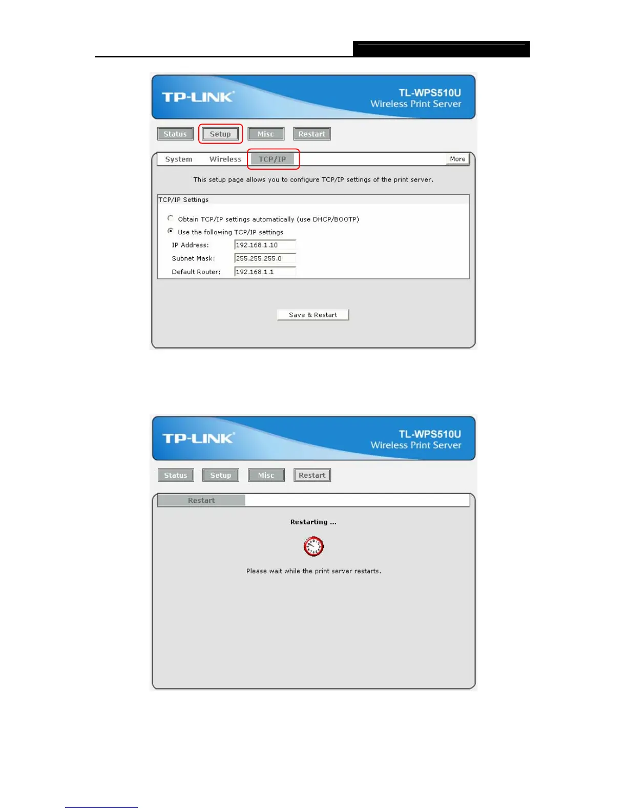 5. Click Save & Restart and then wait the print server to save the changes and restart.