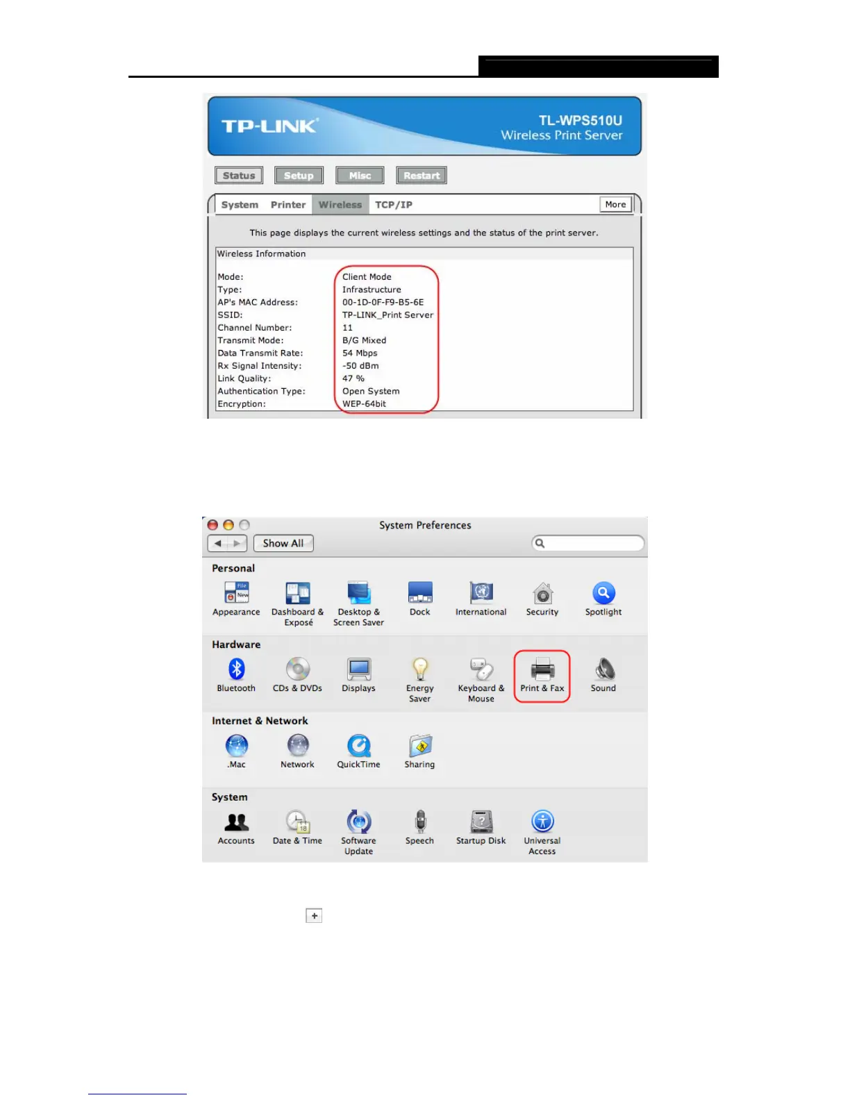 11. Click the Apple icon > System Performances > Print & Fax to add a Standard TCP/IP port