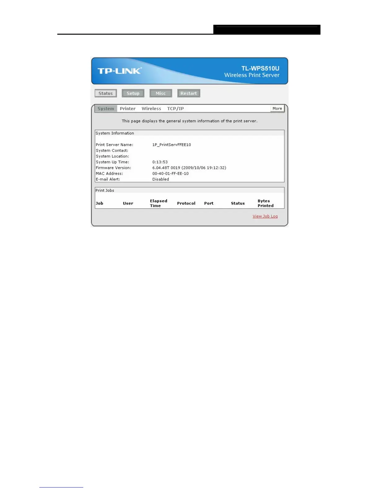 ¾ System Up Time: This option allows you to view uptime of the print server. When you start