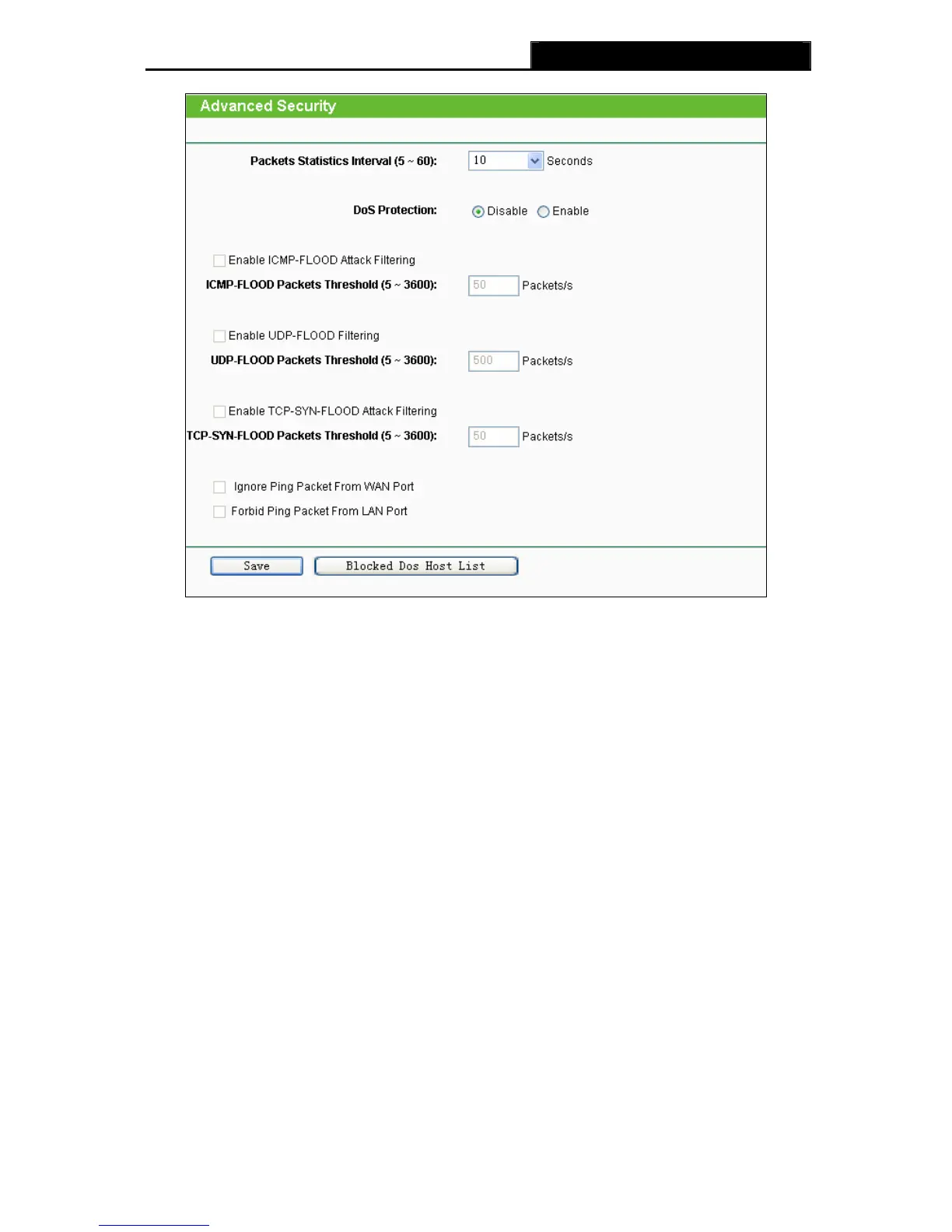 ¾ Packets Statistics Interval (5~60) - The default value is 10. Select a value between 5 and