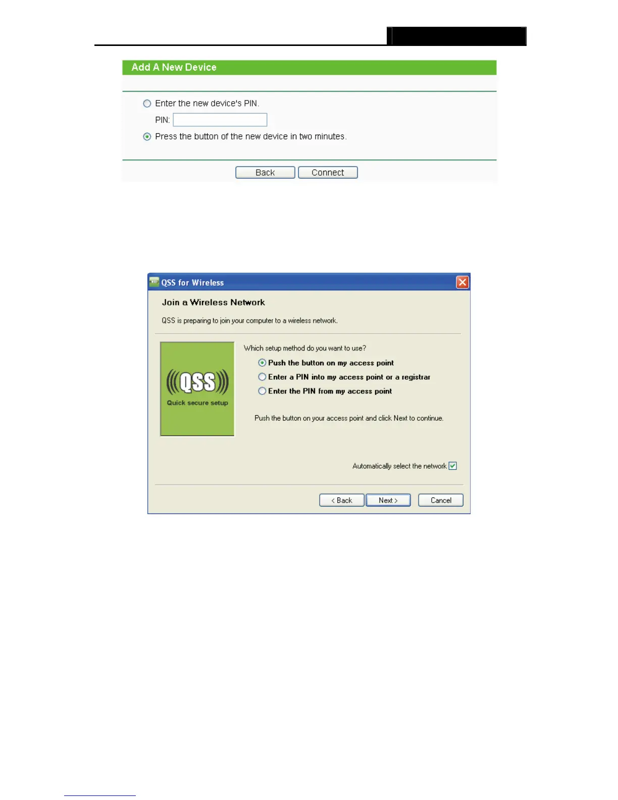 Step 3: For the configuration of the wireless adapter, please choose Push the button on my