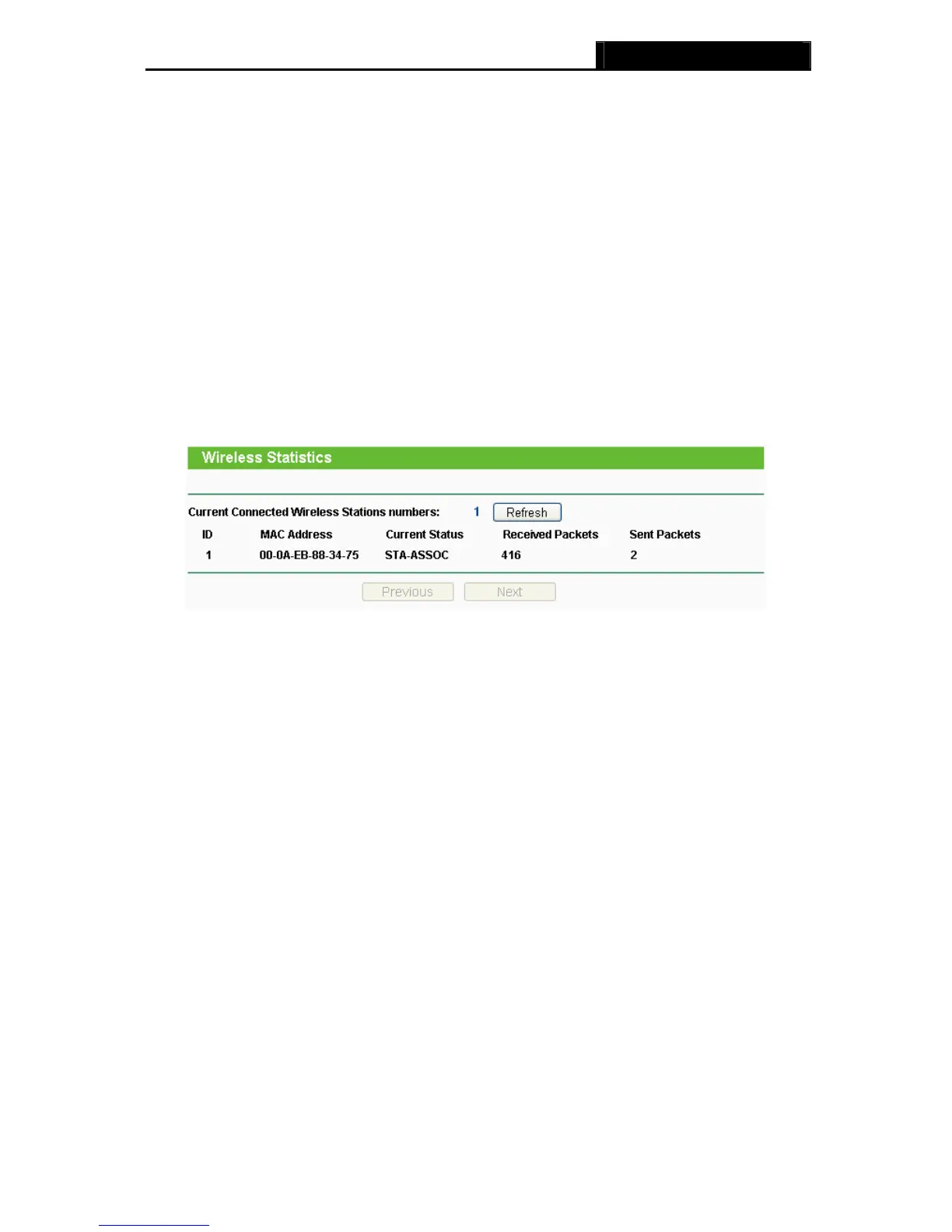 If the numbers of connected wireless stations go beyond one page, click the Next button to go to