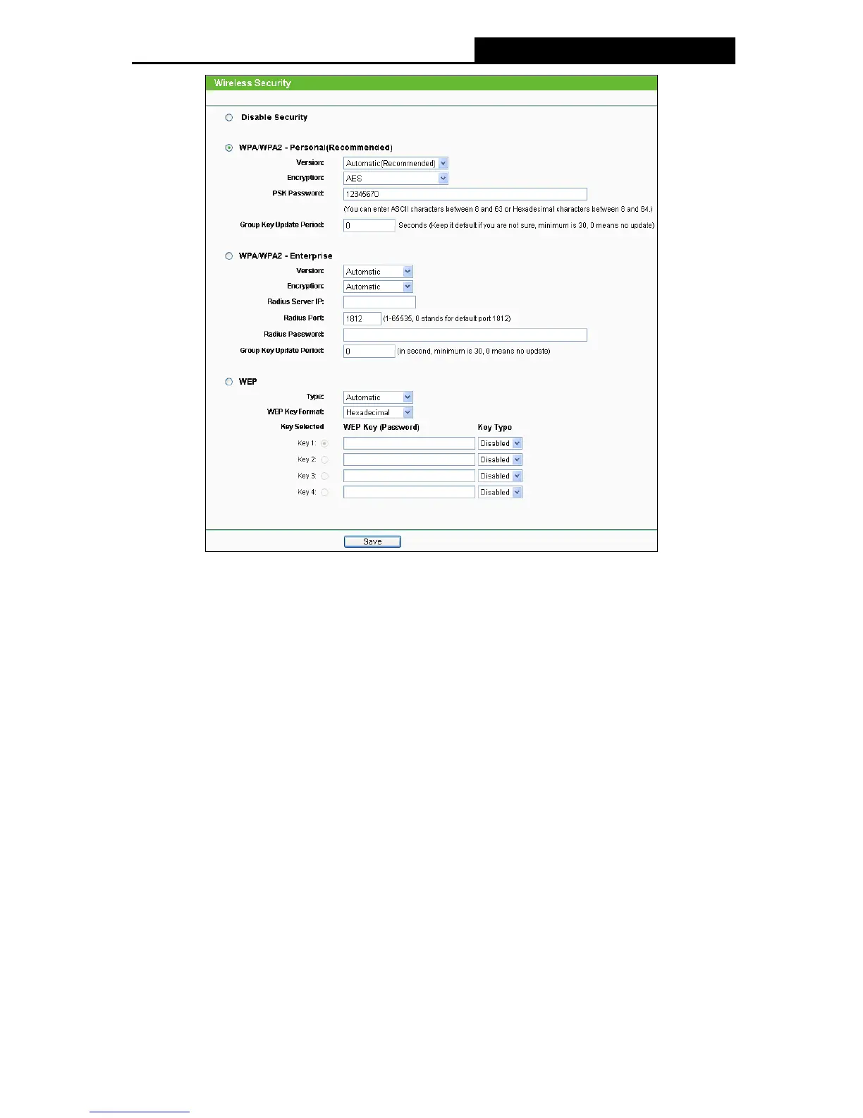 Disable Security - If you do not want to use wireless security, check this radio button. But it’s