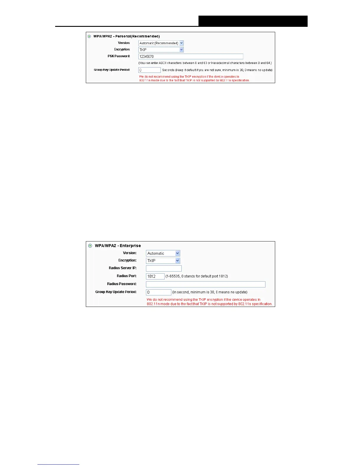 If you check the WPA/WPA2-Enterprise radio button and choose TKIP encryption, you will