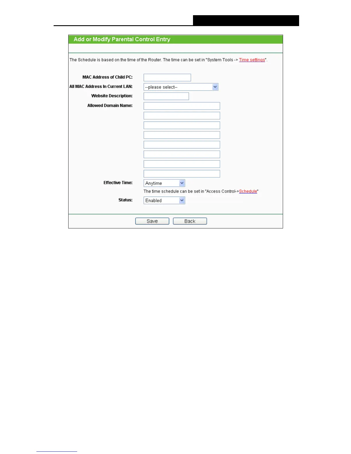 Parental Control - Check Enable if you want this function to take effect; otherwise,