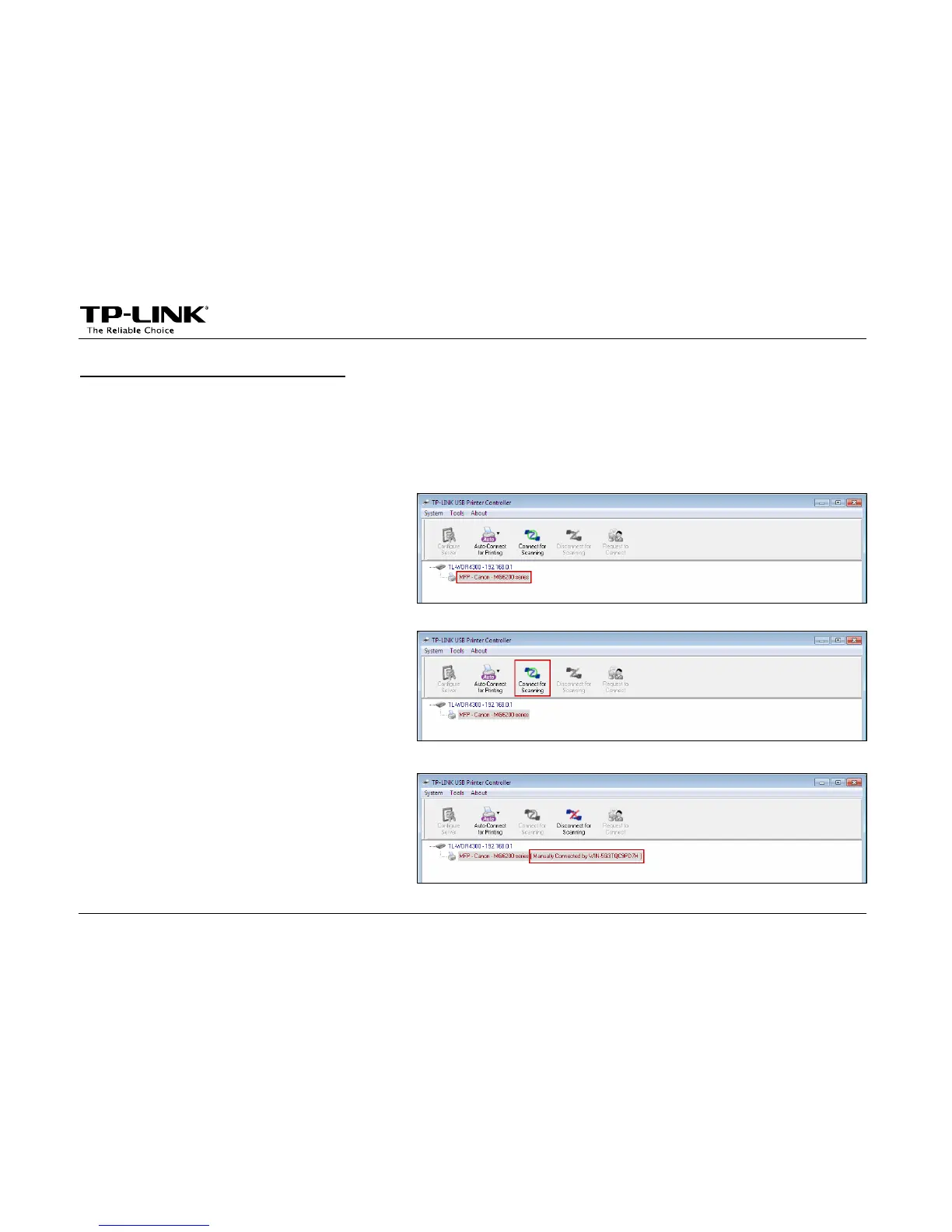 If you choose this method for scanning, no one else in your LAN can share the scanner or MFP to either print or
