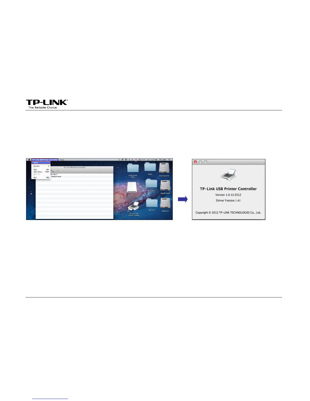 Go to TP-Link USB Printer Controller -> About; a window will pop up and display some relevant information