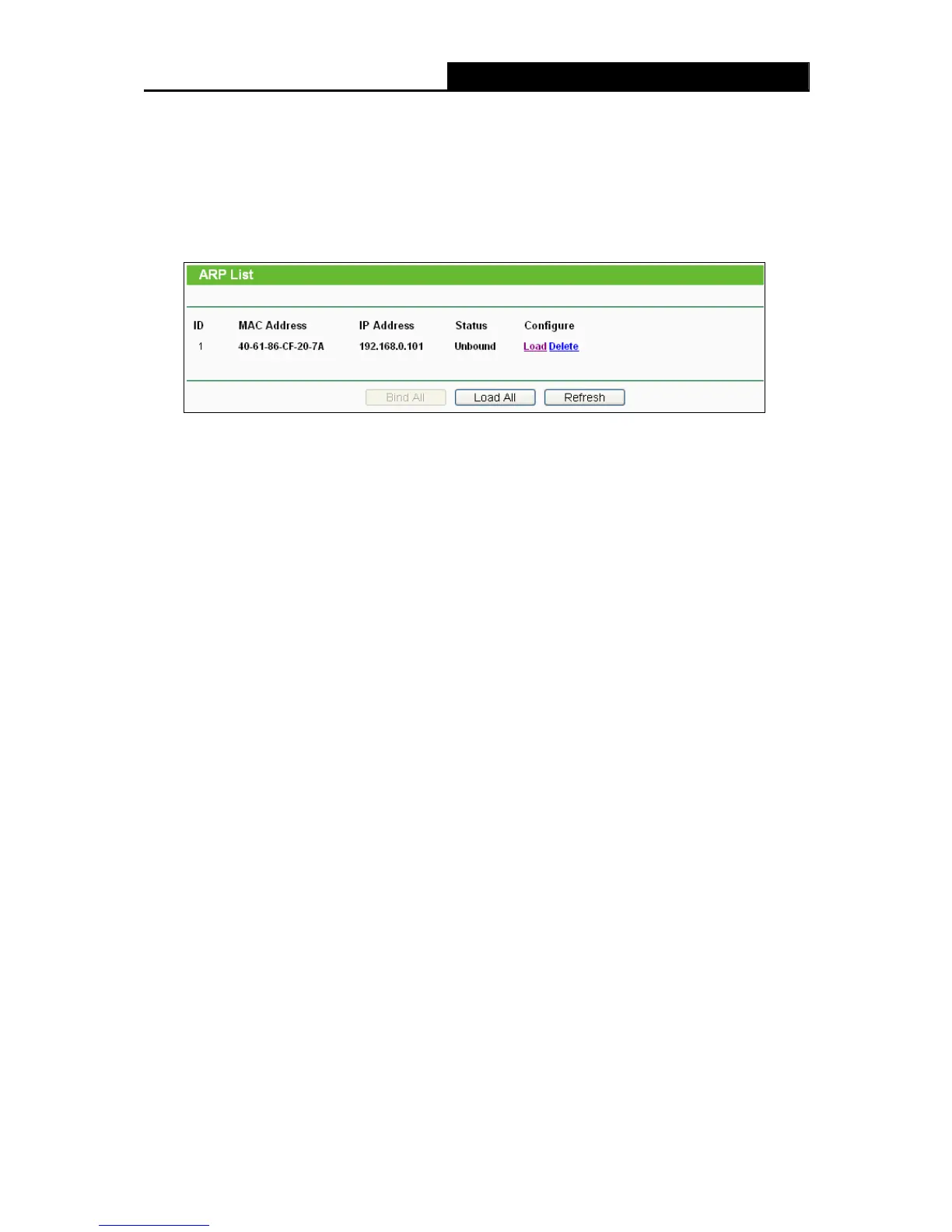Click the Load All button to load all items to the IP & MAC Binding list.