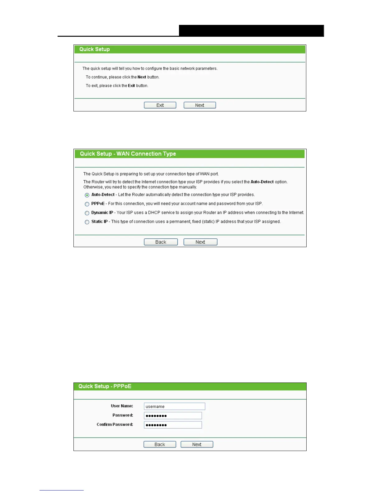 1) If the connection type detected is PPPoE, the next screen will appear as shown in Figure