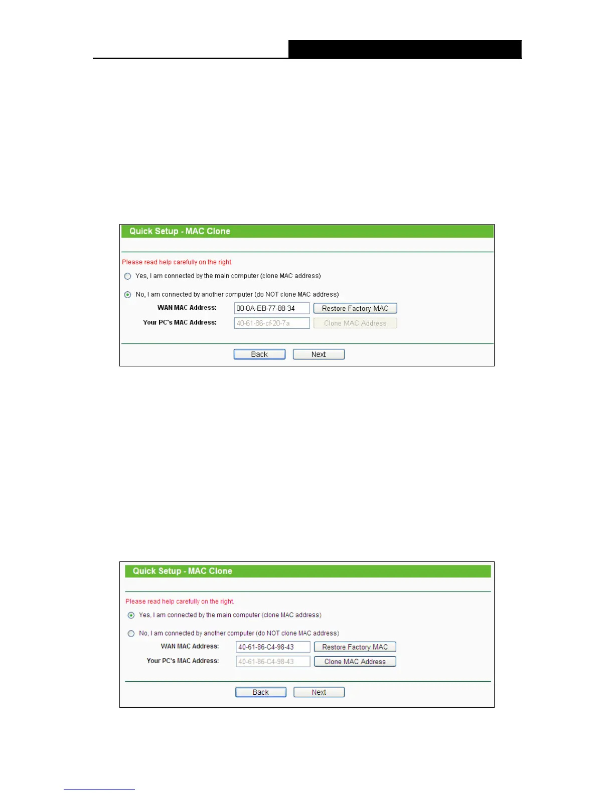 offer the Internet connection any more. Therefore, it is necessary to clone the MAC address