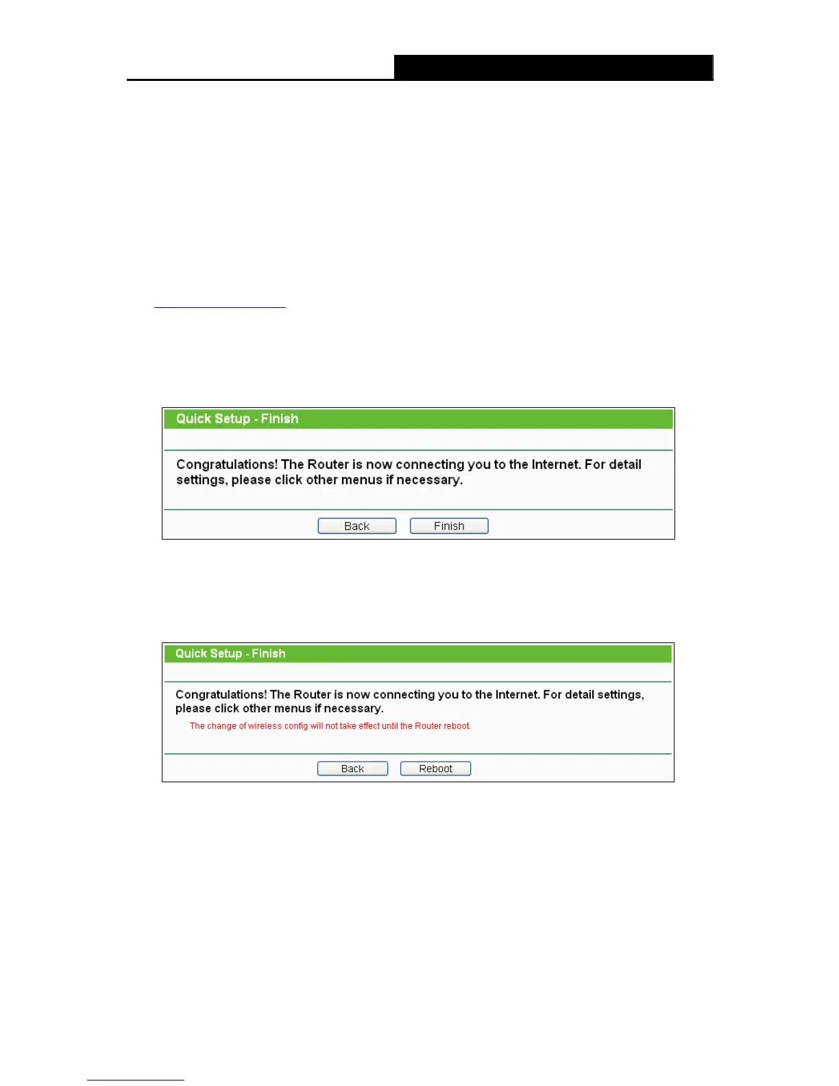 If you don’t make any change on the Wireless page, you will see the Finish page as shown
