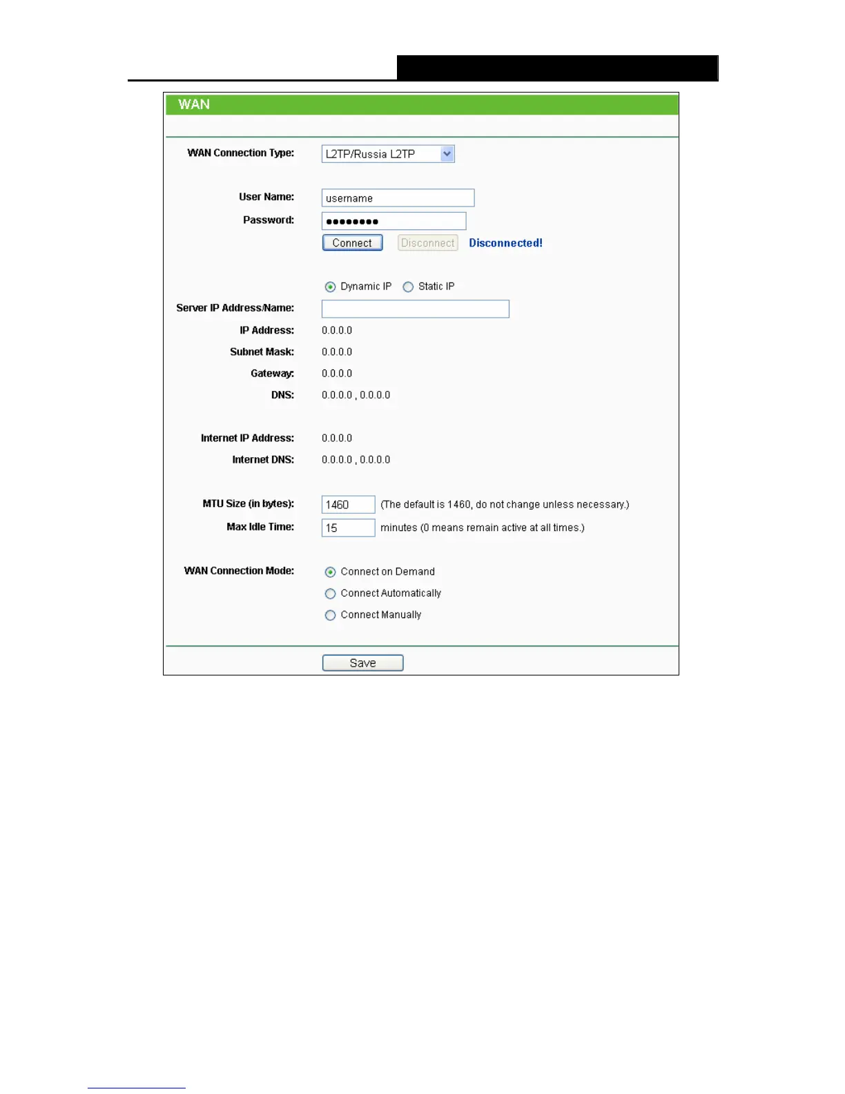 Figure 4-11 WAN - L2TP/Russia L2TP