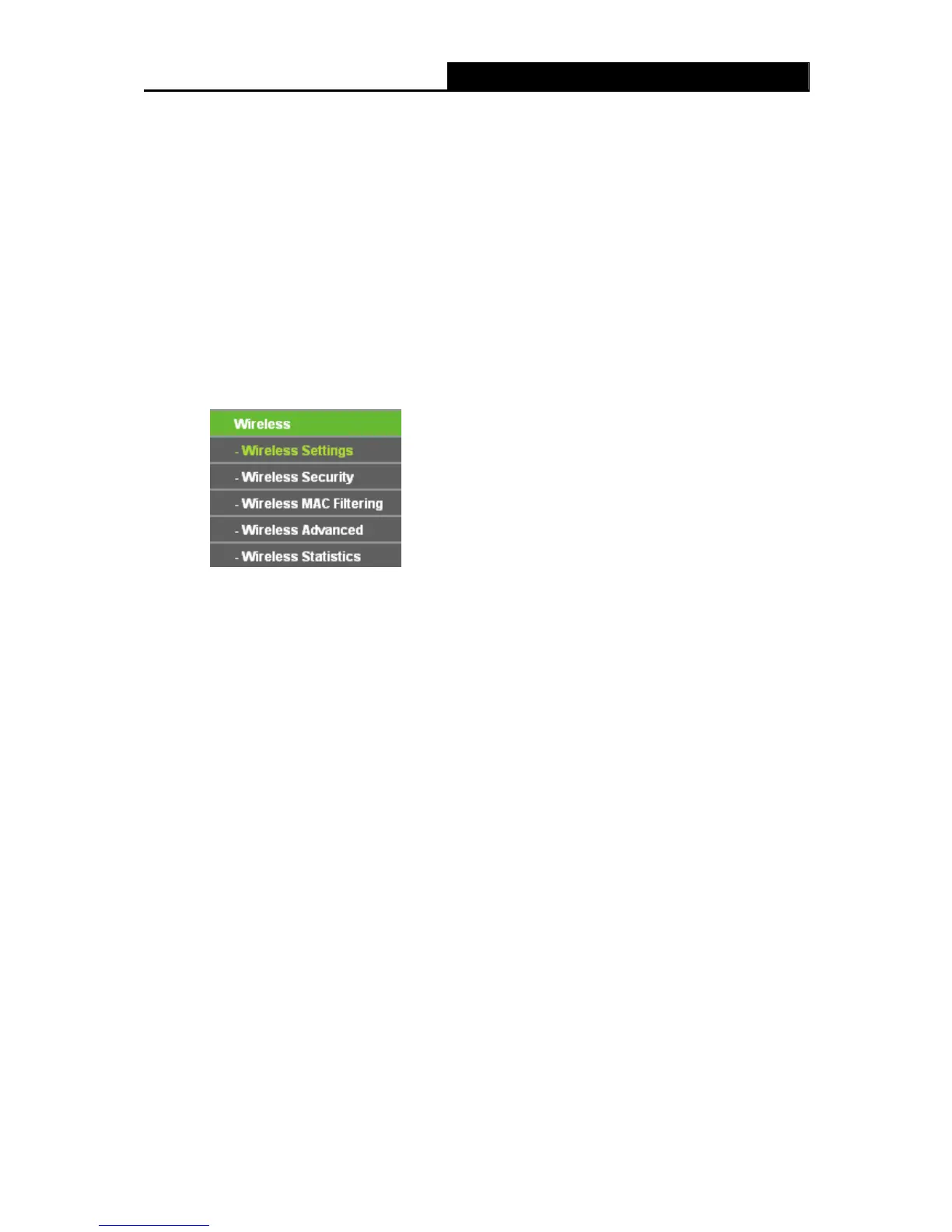 There are five submenus under the Wireless menu (shown in Figure 4-15): Wireless Settings,