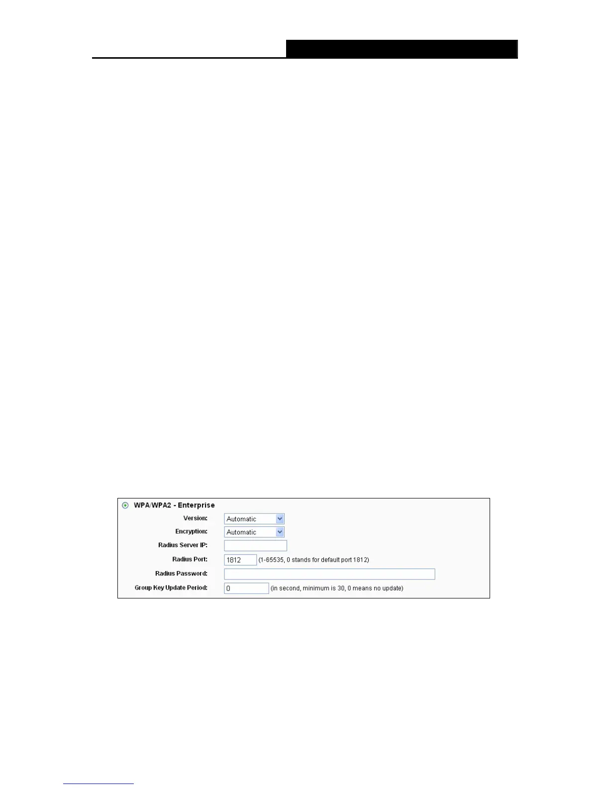 • Group Key Update Period - Specify the group key update interval in seconds. The value