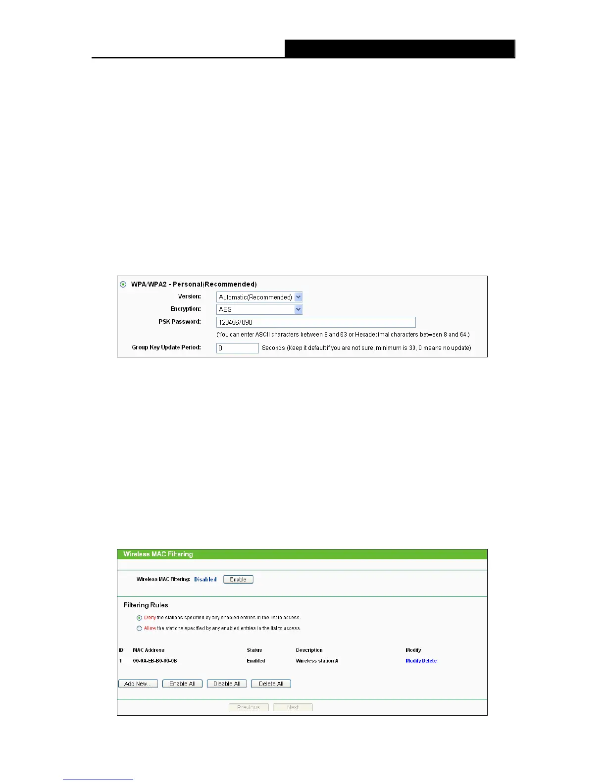 the Wireless MAC Filtering function, shown in Figure 4-24.