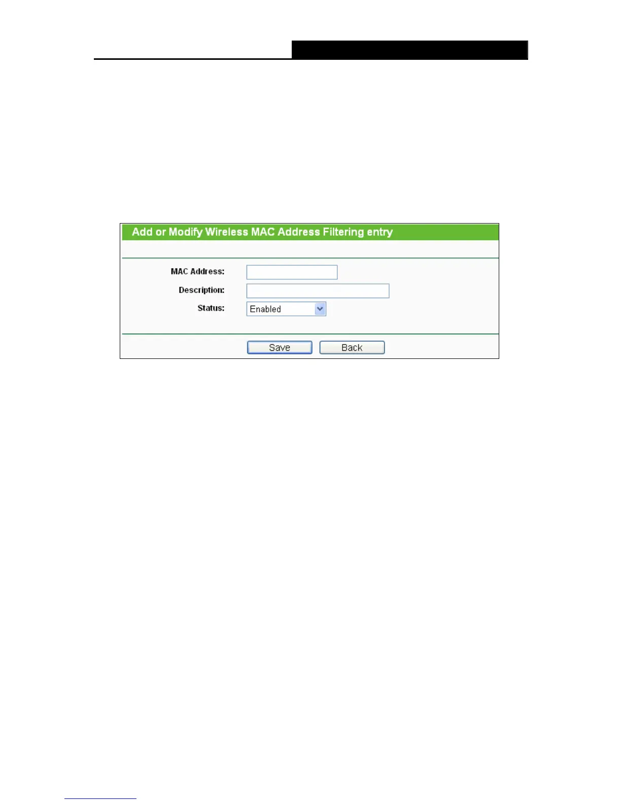 Wireless MAC Address Filtering entry" page will appear, shown in Figure 4-25: