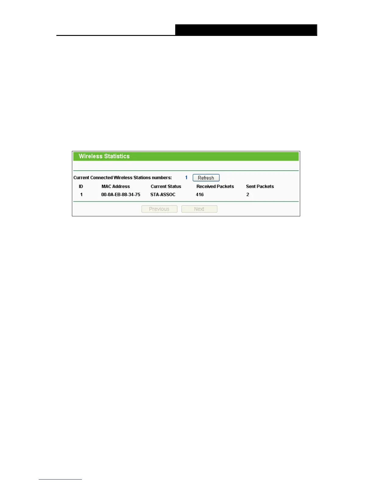 If the numbers of connected wireless stations go beyond one page, click the Next button to go to