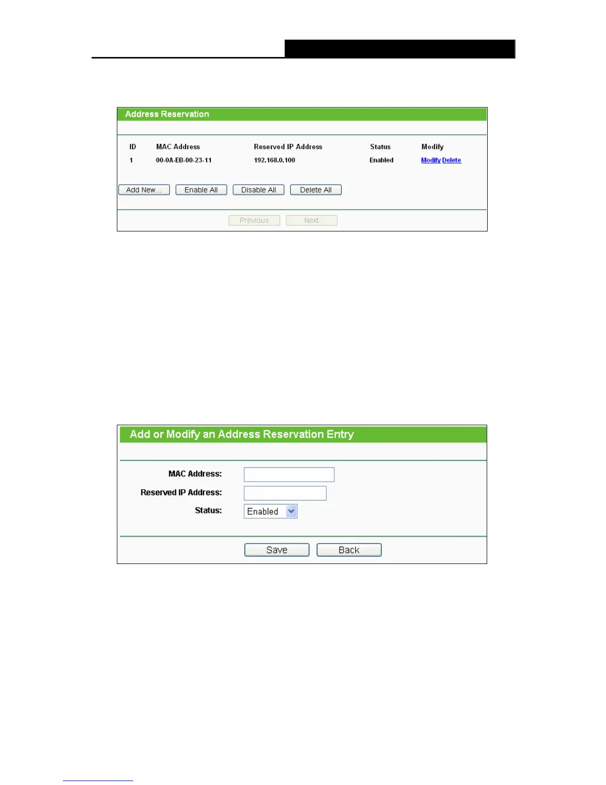 Figure 4-32 Add or Modify an Address Reservation Entry