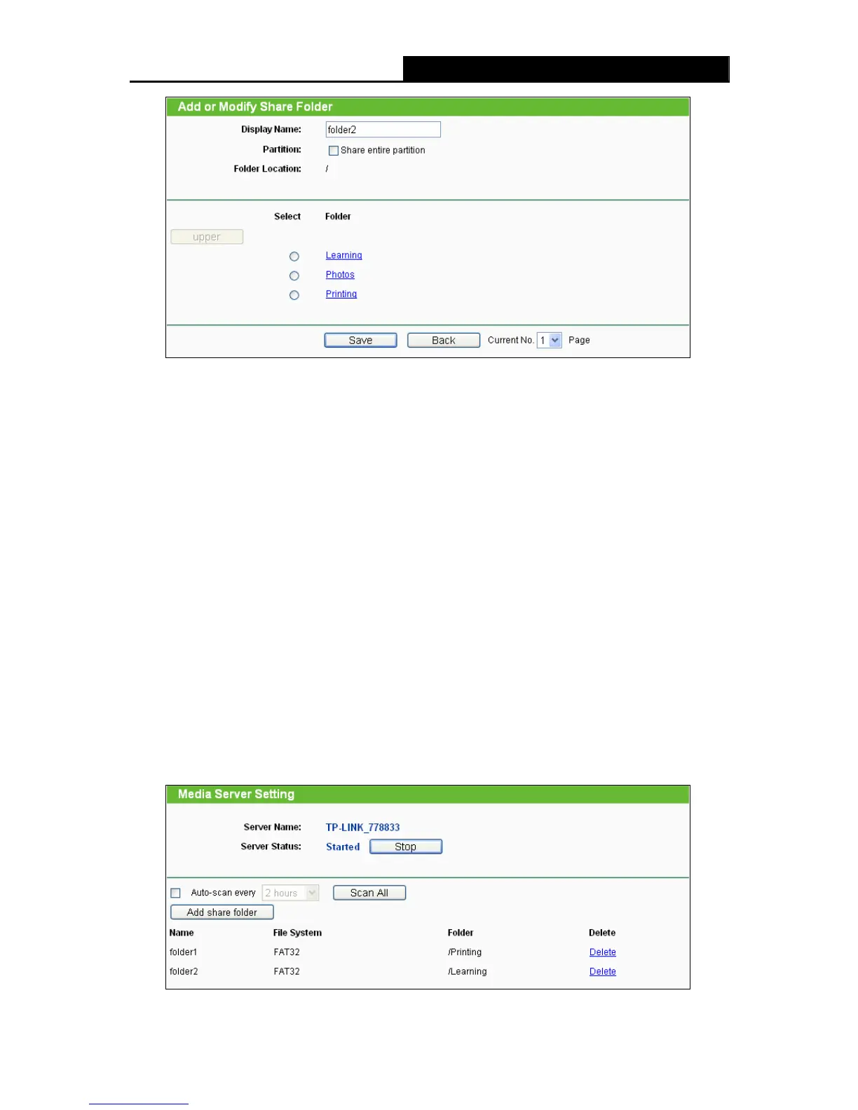 Choose menu “USB Settings→Media Server”, you can create media server that allows you to