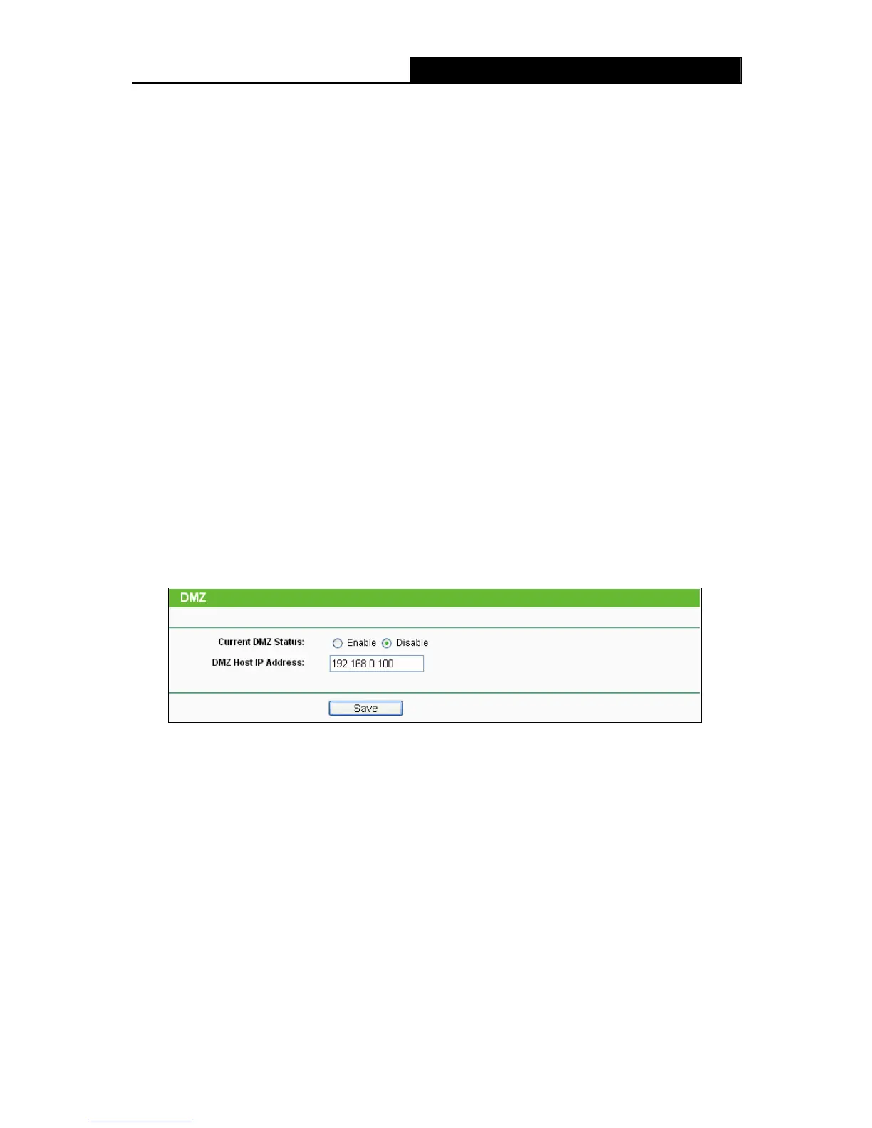Choose menu “Forwarding→DMZ”, and then you can view and configure DMZ host in the screen