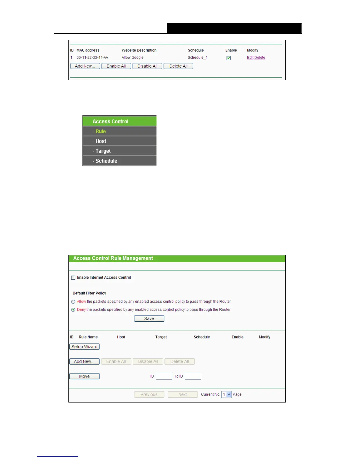 There are four submenus under the Access Control menu as shown in Figure 4-59: Rule, Host,