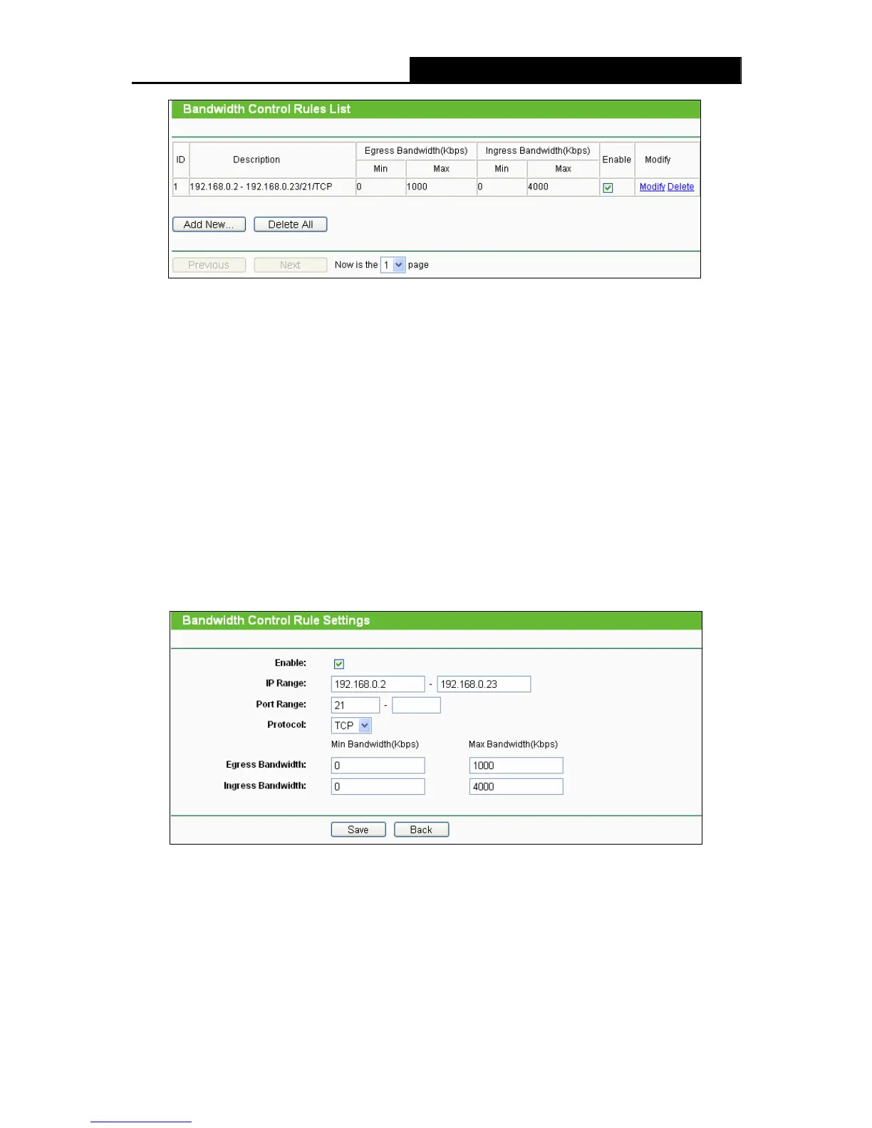 To add/modify a Bandwidth Control rule, follow the steps below.