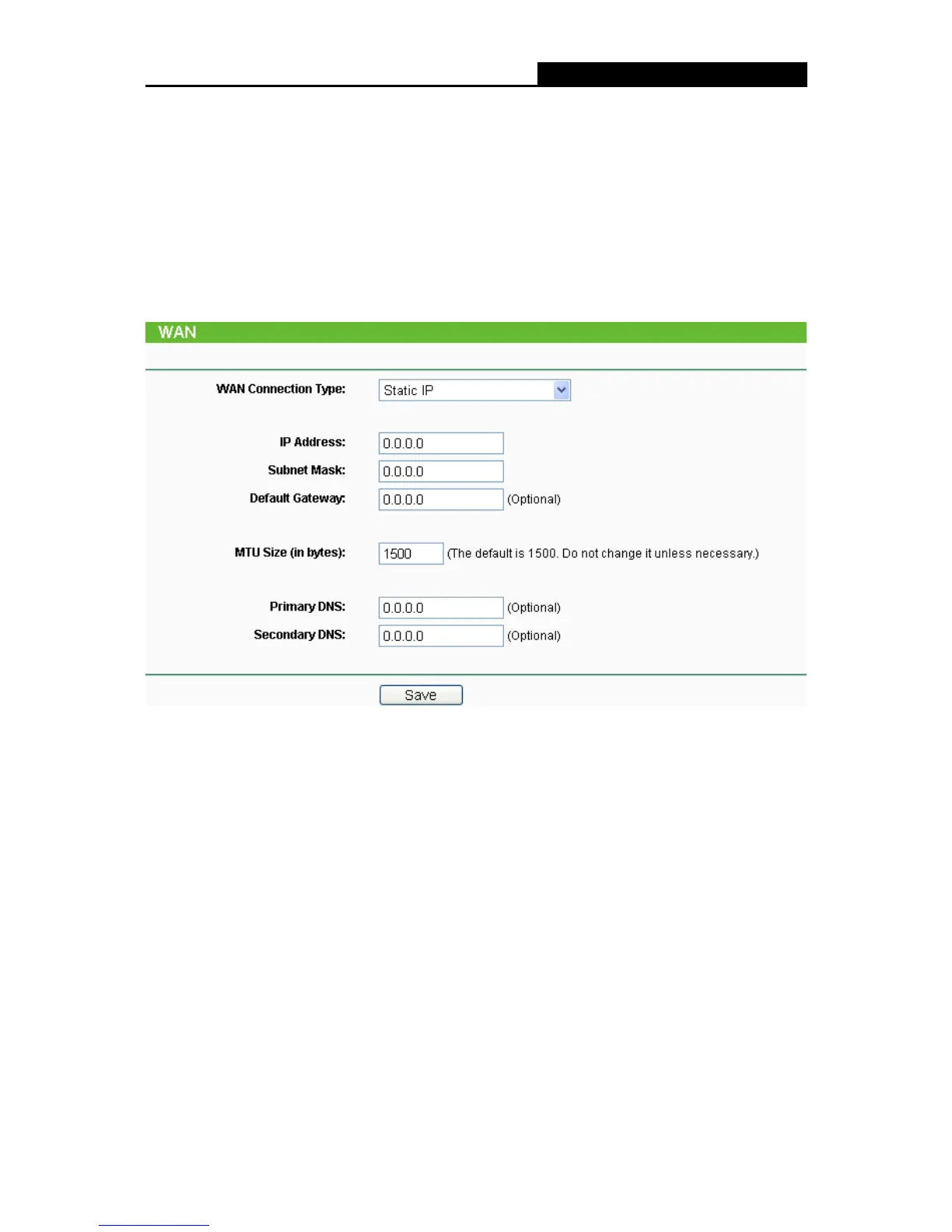 Pagina de setari pentru IP Static va aparea, ca in Figura 3-5: