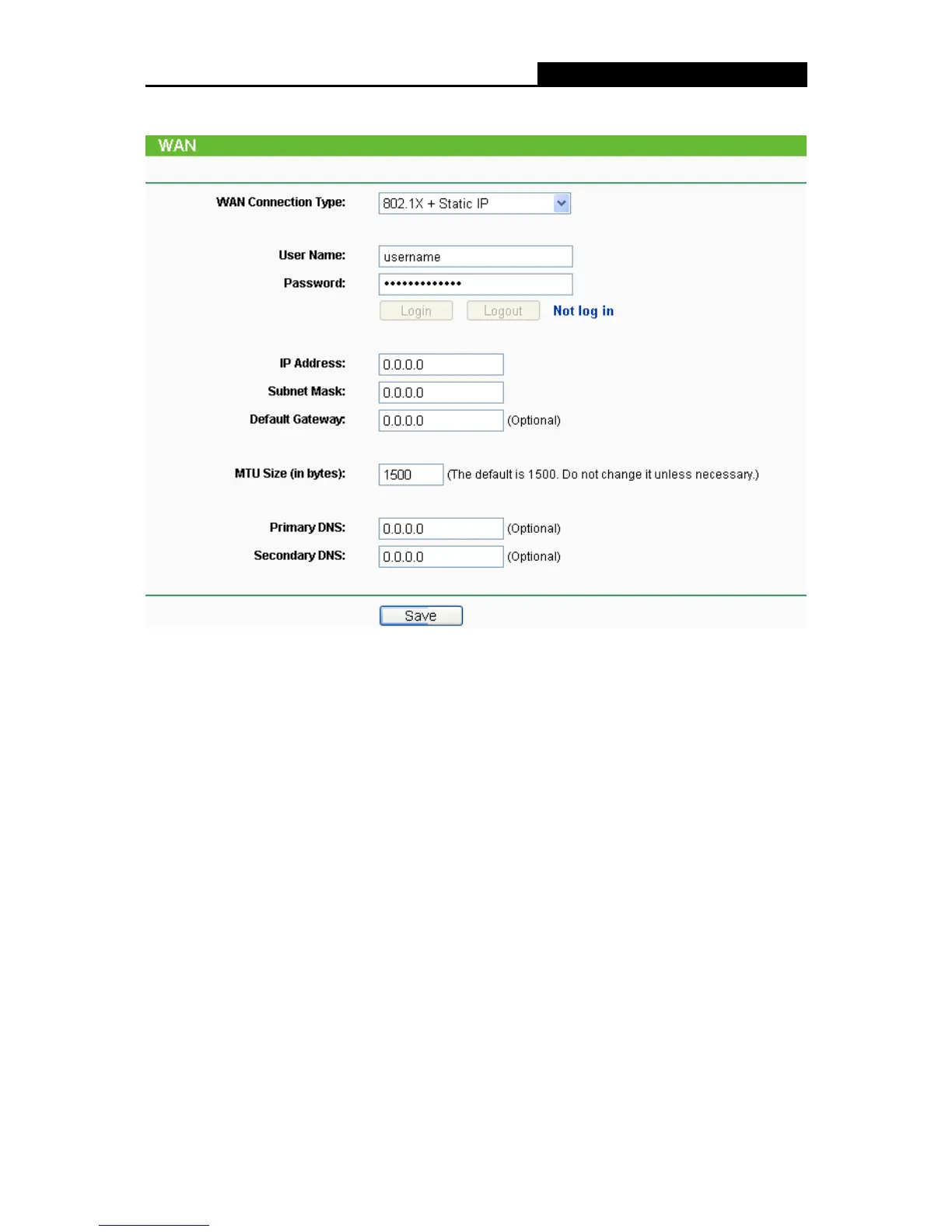 5. Daca selectati 802.1X + Static IP, trebuie sa introduceti urmatorii parametri (Figura 3-9) :