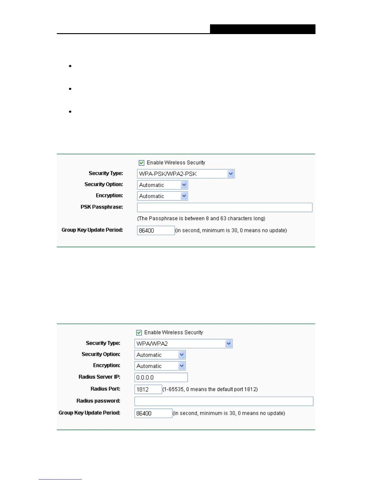 Group Key Update Period - Specificati un interval de actualizare a cheii de grup in secunde.