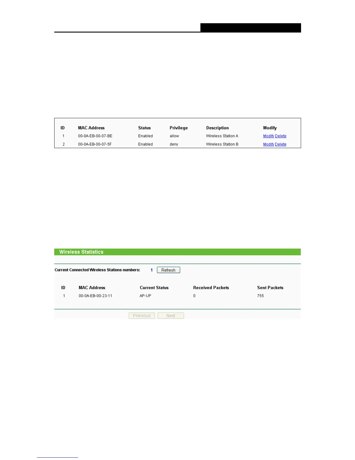 access pentru Filtering Rules, statia wireless B nu va putea sa acceseze router-ul; totusi, alte