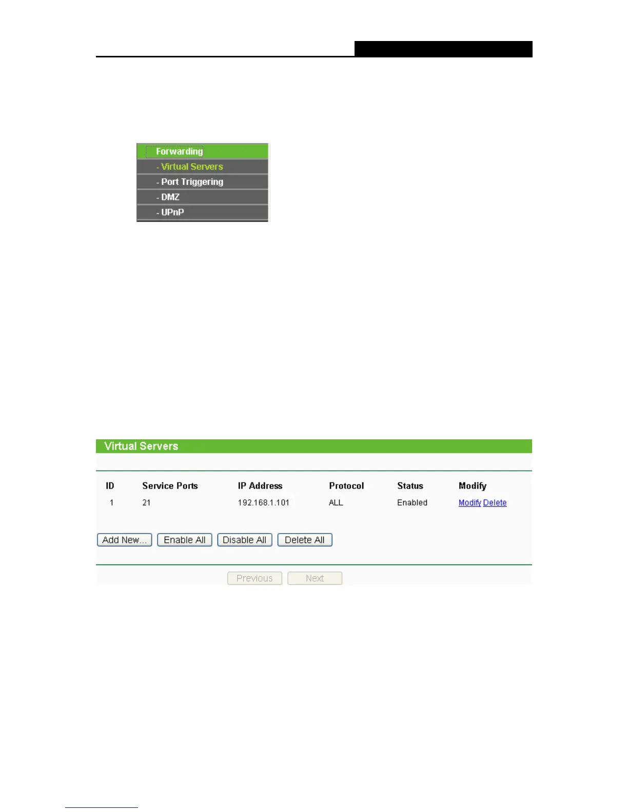 In meniul Forwarding se gasesc trei submeniuri (ilustatrate in Figura 3-29): Virtual Servers, Port
