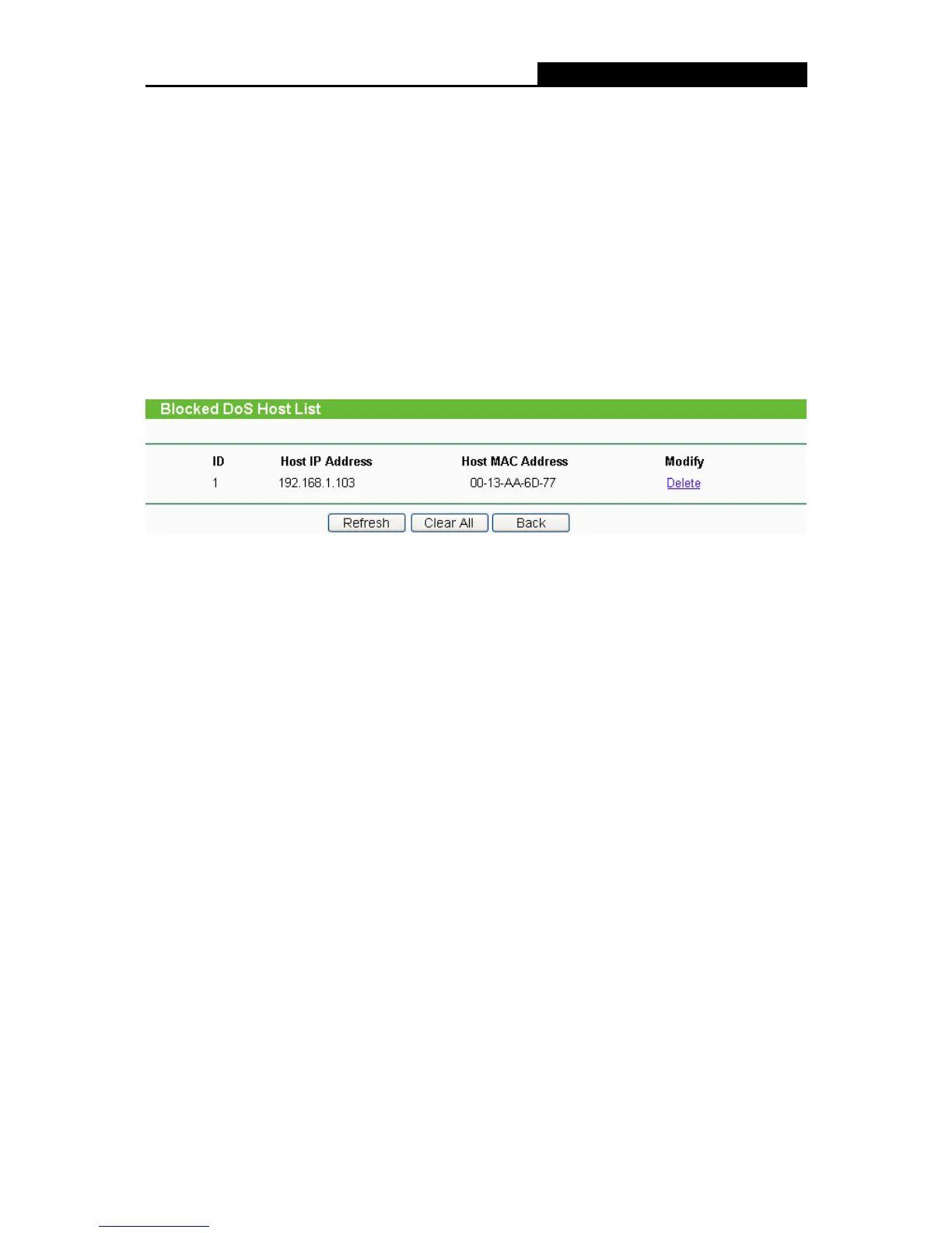 Selectati butonul Blocked DoS Host Table. Urmatoarea pagina va aparea, asa cum este